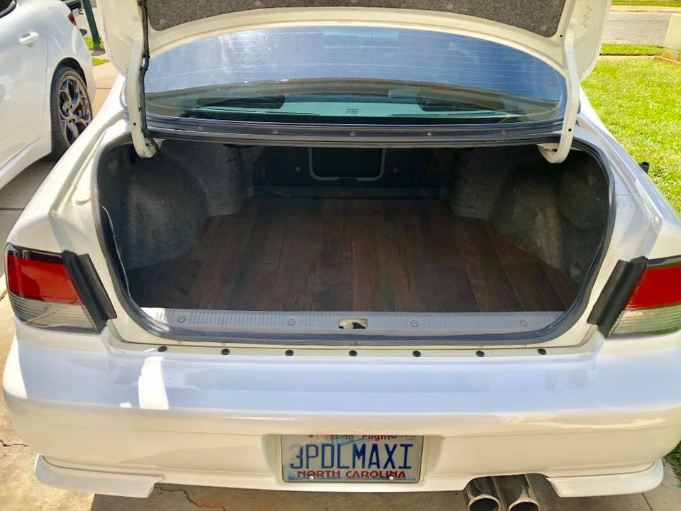 my4thgen 95-99 1995-1999 4thgen Nissan Maxima with Custom Graphite Burch Hardwood Trunk 11/09/2024 Share Facebook Twitter Pinterest Email Credit: Brandy Duncan-Whillock I had one of my buddies build me a new trunk floor out of Graphite Burch hardwood for my Maxine. It is always Christmas for my baby girl. Trunk Setup Prev Post 370z Akebono Calipers on the 1995-199 4thgen Nissan Maxima 11/09/2024 Next Post Turbo 4th Gen Upgraded with Audi Coils and Fast-Response IAT Sensor 11/09/2024 Related Posts Matthew’s 1995 VQ30DE 5-Speed 4thgen Nissan Maxima 10/28/2025 1995 VQ30DE 4thgen Nissan Maxima 10/25/2025 1998 JDM RHD VQ20DE Nissan Cefiro (A32) 10/17/2025 4thgen Nissan Maxima with Custom R34 Retrofit Headlights 10/13/2025 4thgen Nissan Maxima with Clear Red/White Tail Lights 10/13/2025 Corey’s 1997 VQ30DE 5-Speed 4thgen Nissan Maxima 09/27/2025 Comments are closed.