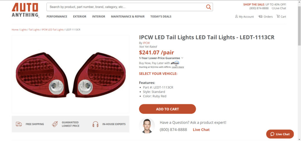 - IPCW Tail Lights are custom-crafted specifically for your vehicle