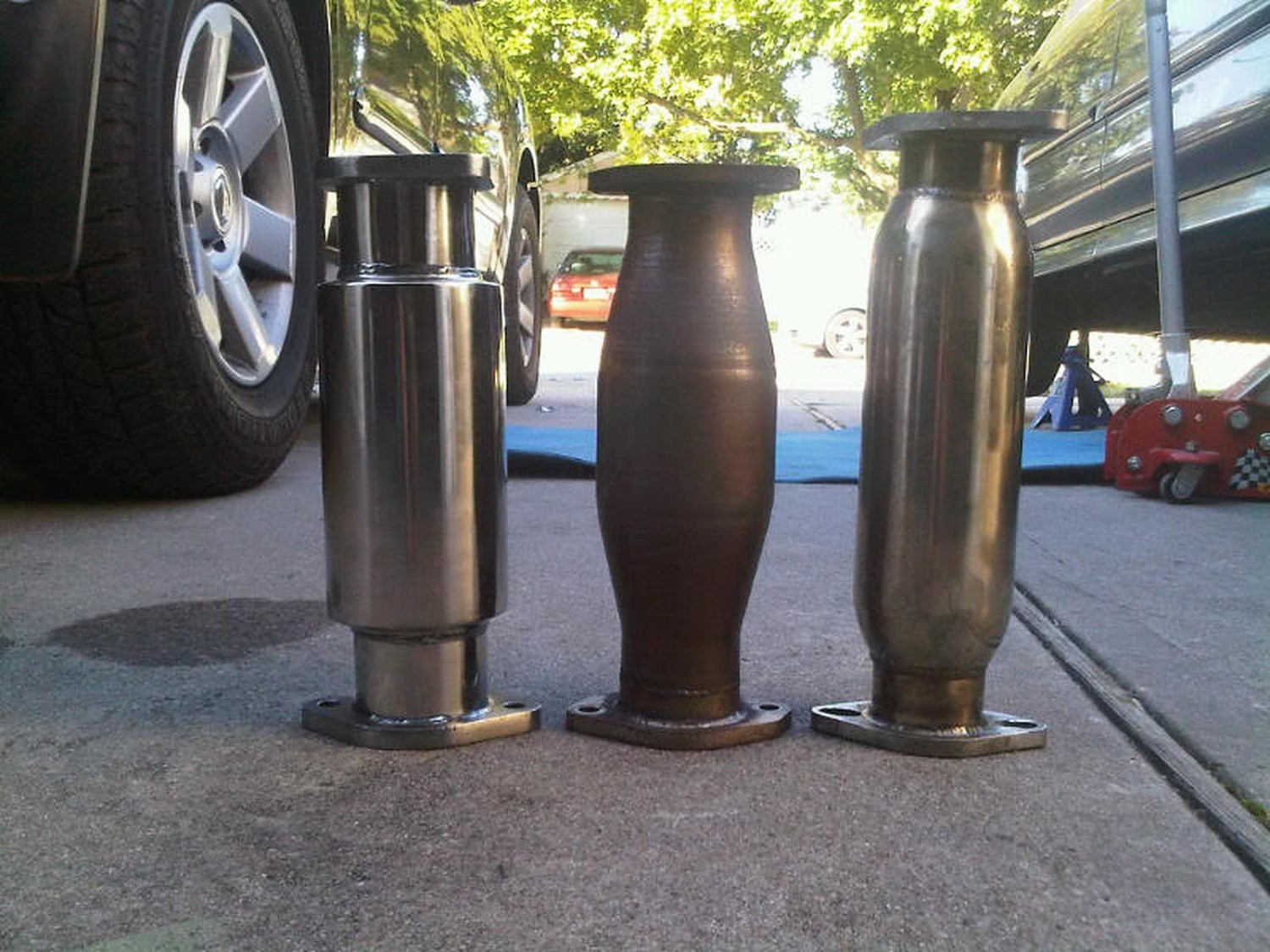 Here are some pics for comparison to help anyone out. Left is 240sx 3″ Pipe……..middle is Cattman Fastcat……..Right is the Dreaded oversized Megan Test Pipe.
