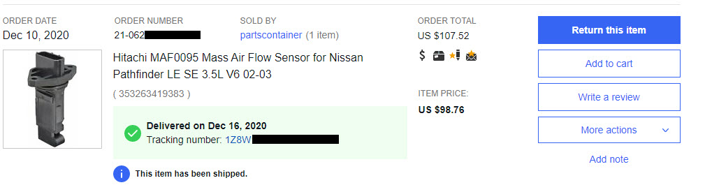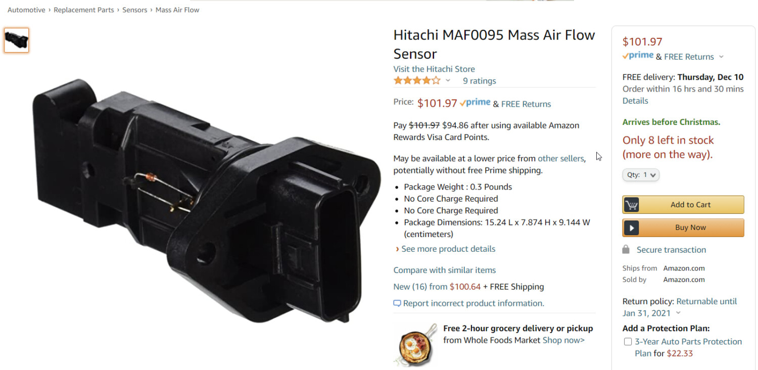Amazon ($109.97): Hitachi MAF0095 Mass Air Flow Sensor: Automotive Amazon.com: Hitachi MAF0095 Mass Air Flow Sensor: Automotive