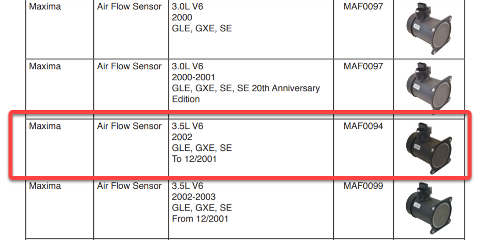 The good news is that you can buy an OEM brand for your 2002-2003 Maxima without the crazy price. Hitachi is the OEM supplier for many Nissan Parts. The part number you need is MAF0095. There is another listed as MAF0099 but its much higher in price so make sure to order the MAF0095. We’ve tried this on our own 2002 Nissan Maxima and it worked perfect with no issues. You will notice that it says “for Pathfinder” but this will work fine on your 2002-2003 Maxima.