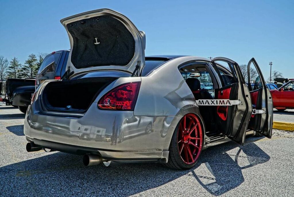 my6thgen 04-08 Artie Straus’s 2004 Custom Modded Bagged 6thgen Nissan Maxima Transformation 08/26/2021 Share Facebook Twitter Pinterest Email Owner: Artie Straus Year: 2004 Model: Maxima Current Color: Coral Sand Transmission: 6-Speed Manual Trim: SL Mini-Feature Prev Post 2002-2003 5thgen Nissan Maxima Power Window Auto-Up One Touch Function Fix 08/25/2021 Next Post Ryan’s 2003 Bagged & Modded 5thgen Nissan Maxima 08/26/2021 Related Posts 2004-2008 6thgen Nissan Fusible Link Replacement (24380-79912) 04/18/2026 2004 6-Speed 6thgen Nissan Maxima RIPP Vortech Supercharged (2026 Build) 01/17/2026 John Canuel ‘s 2004 Gen2 VQ35DE 6-Speed 6thgen Nissan Maxima (2026 Edition) 01/10/2026 6thgen Nissan Maxima on FX35 Wheels 01/04/2026 Brandon’s 2004 Gen2 VQ35DE E85 6-Speed 6thgen Nissan Maxima 12/31/2025 Christian’s 2004 VQ35DE 6-Speed 6thgen Nissan Maxima 12/31/2025 Comments are closed.