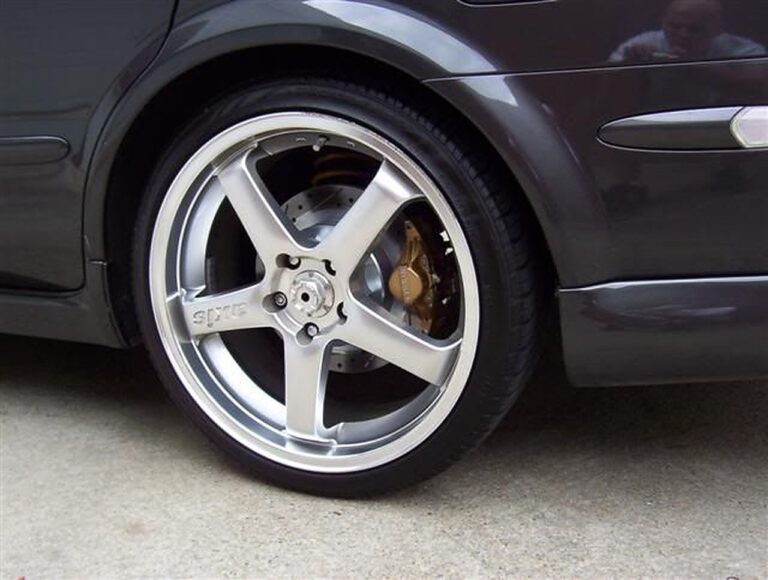 I have tried this kit with several wheels so you can get an indication of what will fit…. These kits DO NOT FIT UNDER THE STOCK 17″ Maxima wheels! So far, every aftermarket 17″ and 18″ wheel I have tried will fit, but the 17s get close on spoke clearance–depending on wheel design. I am currently trying to compile a database of all of the wheels that fit these kits to give you an idea, but the best way is to simply measure for yourself. I make no claims to wheel fittment, but for a general guess on if they will fit or not, use these measurements: