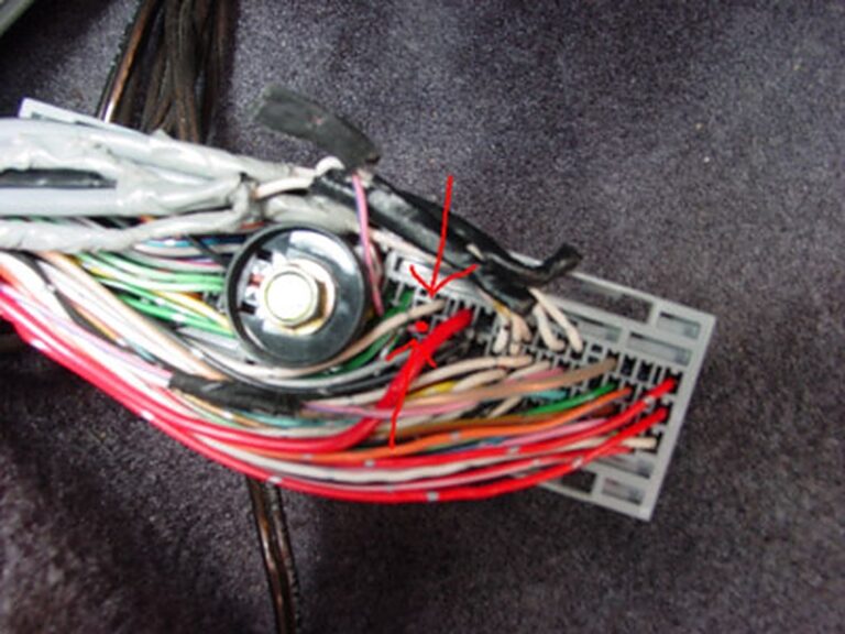 2. Find the harness that comes from the neutral/reverse position indicator switch on your manual transmission. The switch is the one that is down at the bottom of the transmission and there are four wires in that harness. The wires you are looking for are the blue wire and the blue/red wire. To make sure you got the right two, put the transmission into reverse and get a multimeter and check the resistance across the two pins in the connector that correspond to the blue and the blue/red wires. The resistance should be near zero.
