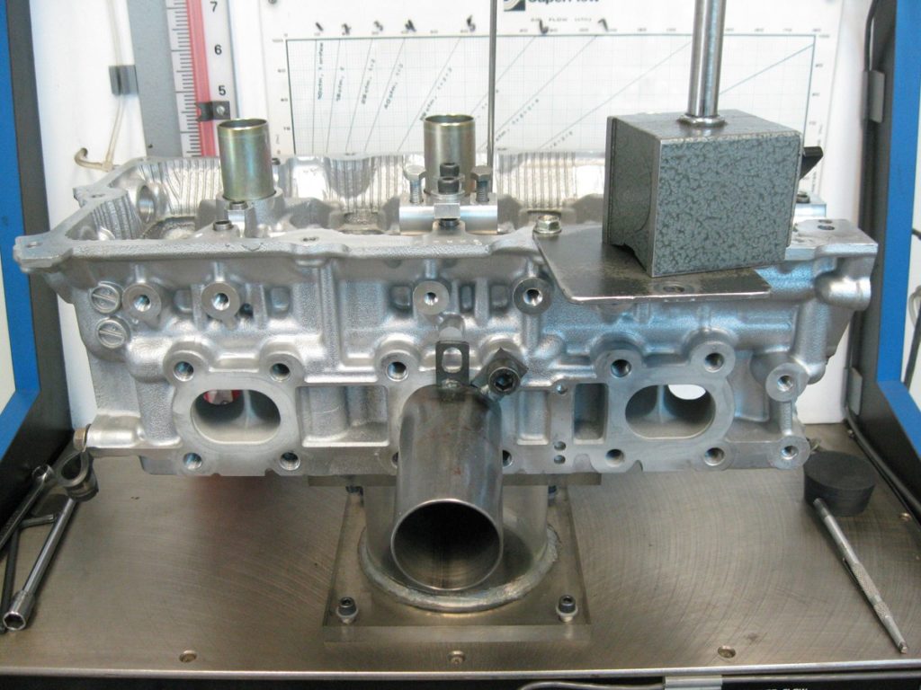 Stock DE intake ports on the flow bench, substantially different than the HR