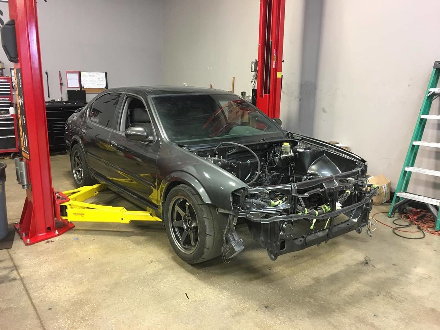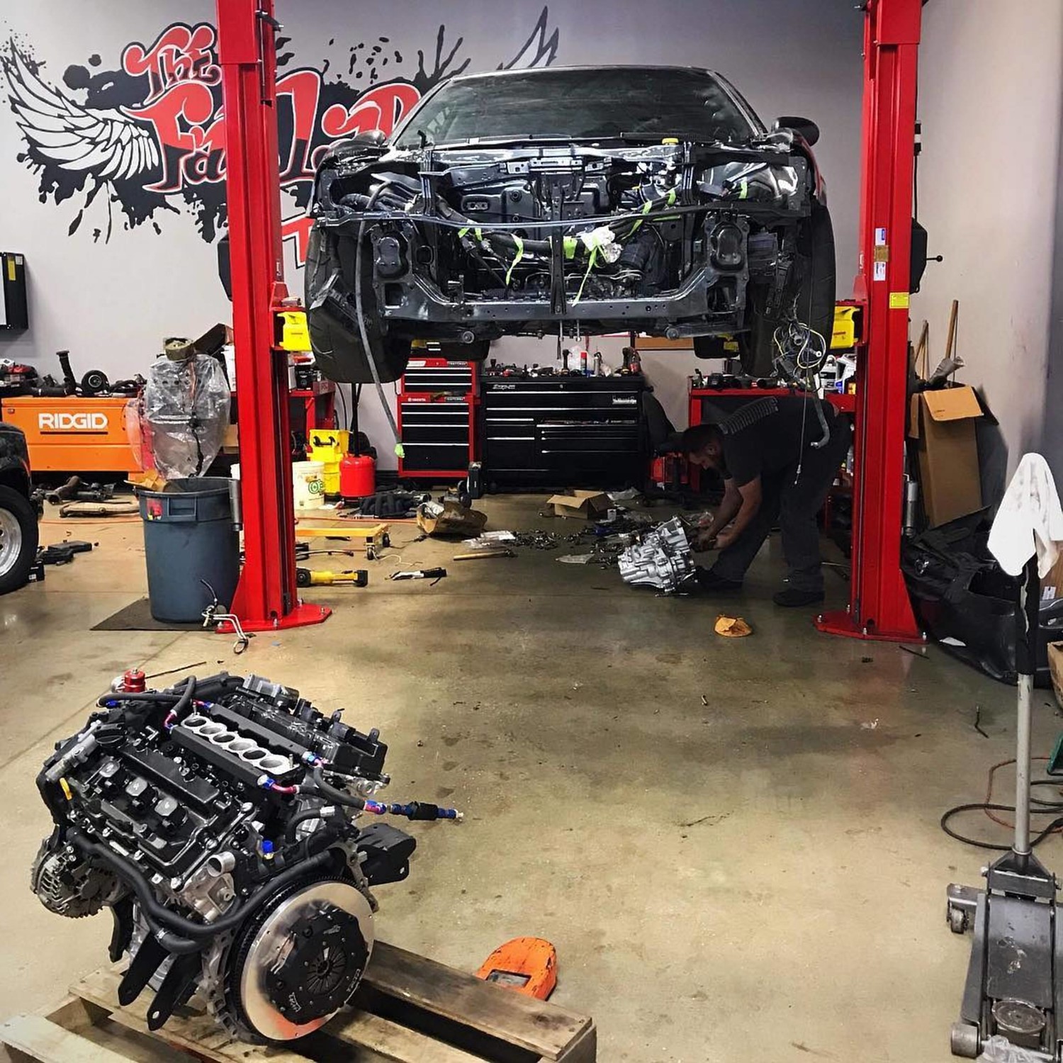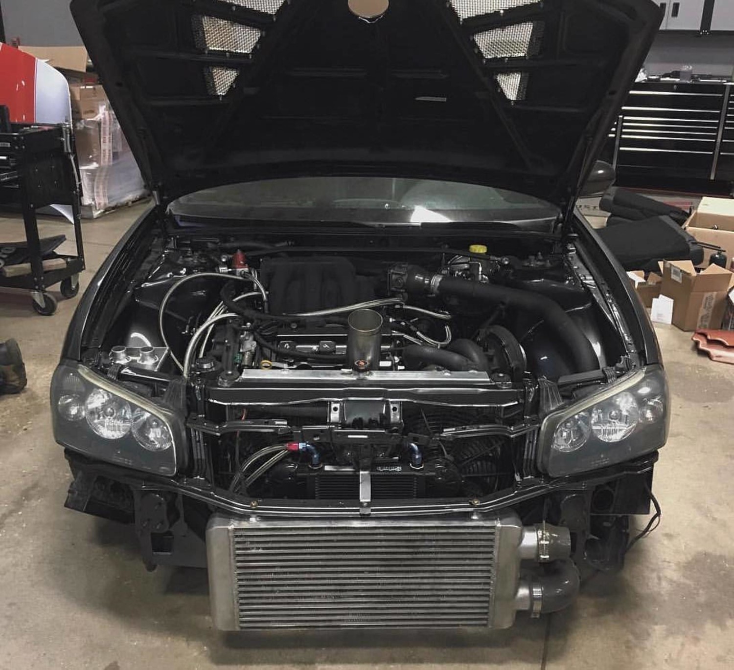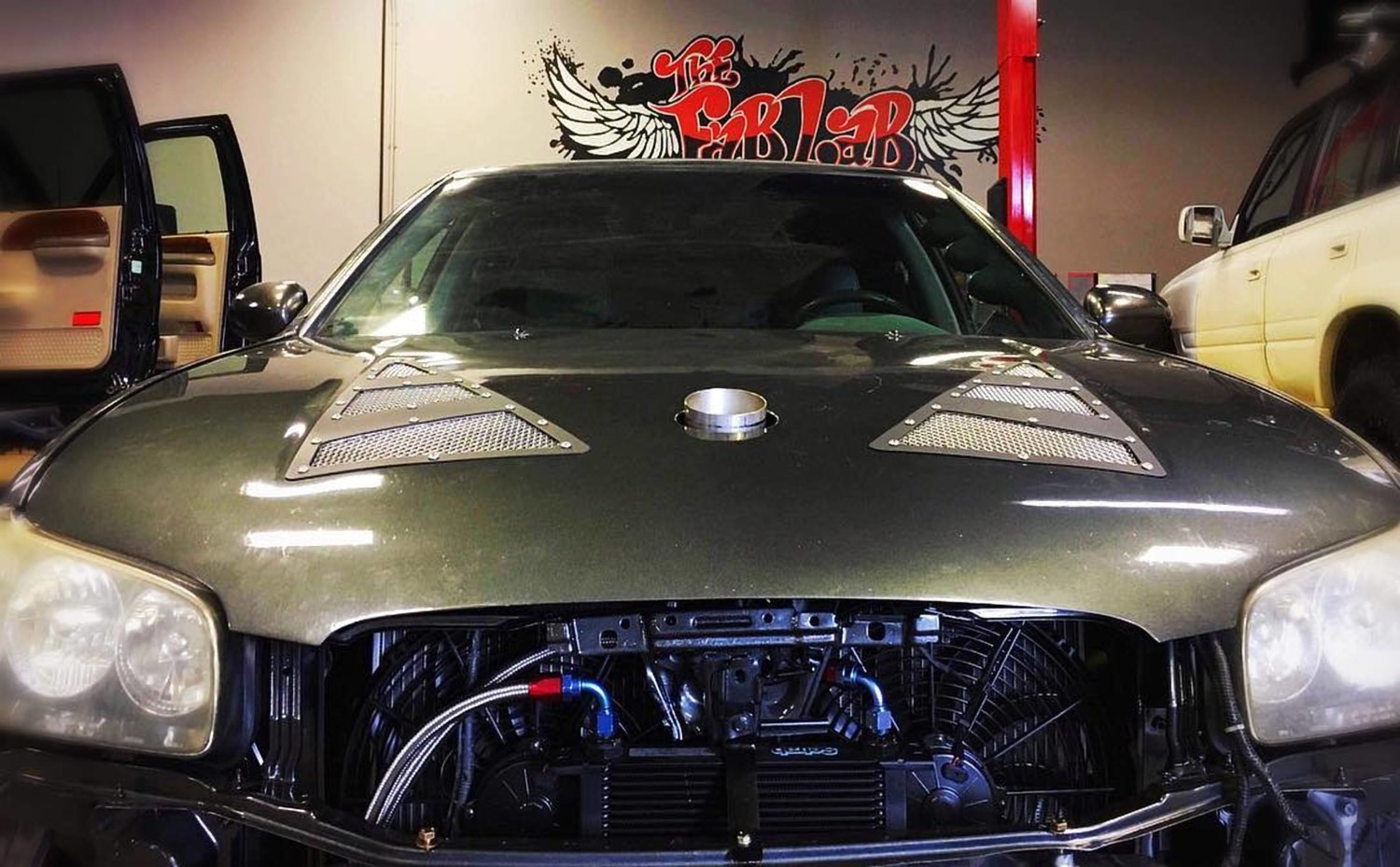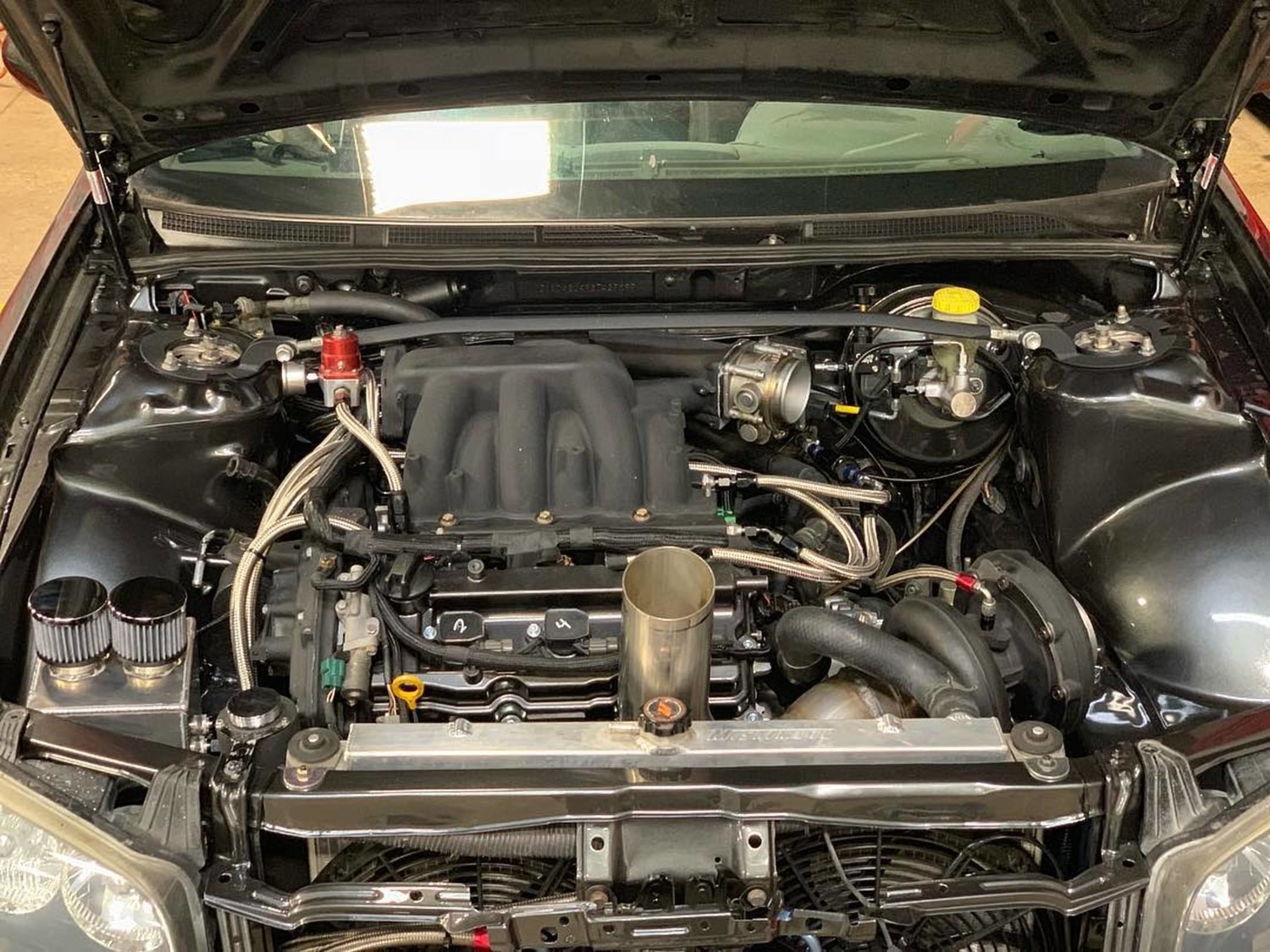 - Tucked and shaved engine bay