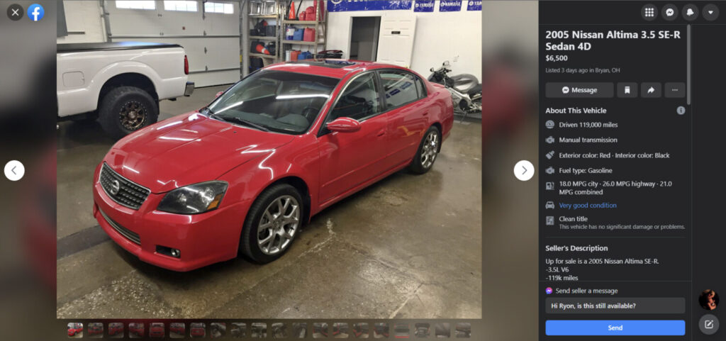 mySER 05-06 Ryon’s Clean Nissan Altima SE-R 6-Speed Code Red 11/12/2021 Share Facebook Twitter Pinterest Email Last Updated: 10/29/2024 @ 05:49 amOwner: Ryon P. Year: 2005 Model: Altima Color: Code Red Transmission: 6-Speed Manual Trim: SE-R General & Misc Prev Post Rich Spencer’s 2020 Gen3 VQ35DE Swapped 4thgen Nissan Maxima 11/11/2021 Next Post The 1995-1999 4thgen Nissan Maxima Unofficial ECU Core Identification List 11/13/2021 Related Posts Hidden Gauge Self-Test Mode on the 2005–2006 Nissan Altima SE-R 01/17/2026 Pro Tip: Protecting the Blower Motor on a 2005–2006 Nissan Altima SE-R 12/30/2025 2005-2006 Nissan Altima SE-R Rebuilding Your Axles 11/29/2025 2005-2006 Nissan Altima SE-R Radio Bezel Refresh 10/24/2025 Aftermarket Gauge Bezel for 2002-2006 Nissan Altima SE-R 10/23/2025 Nissan Altima SE-R 2014 Calendar 10/19/2025 Comments are closed.