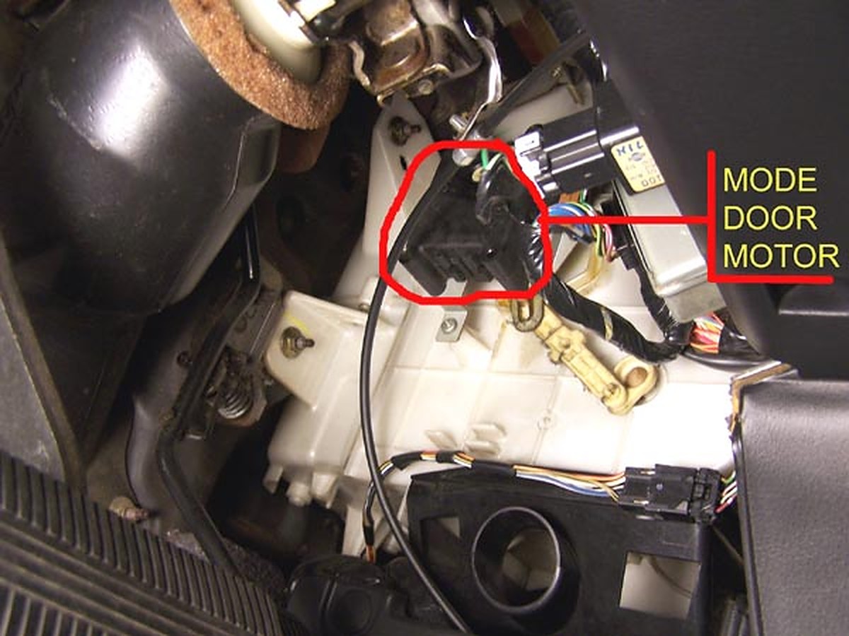 Here is a view of the Air Mix Door Motor from the passenger foot well.