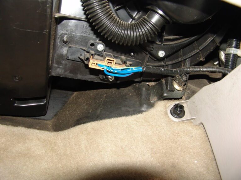 The blower resistor is located near the firewall under the passenger side of the dash. It is the piece that the connector with blue wires is attached to.