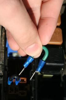 Look at the cover over the relays that are in front of the battery and you will see one is labeled ASCD. This is the relay that gets removed. If your car has an automatic transmission, you need 2 jumper wires. If your car has manual trans, you only need 1 wire.