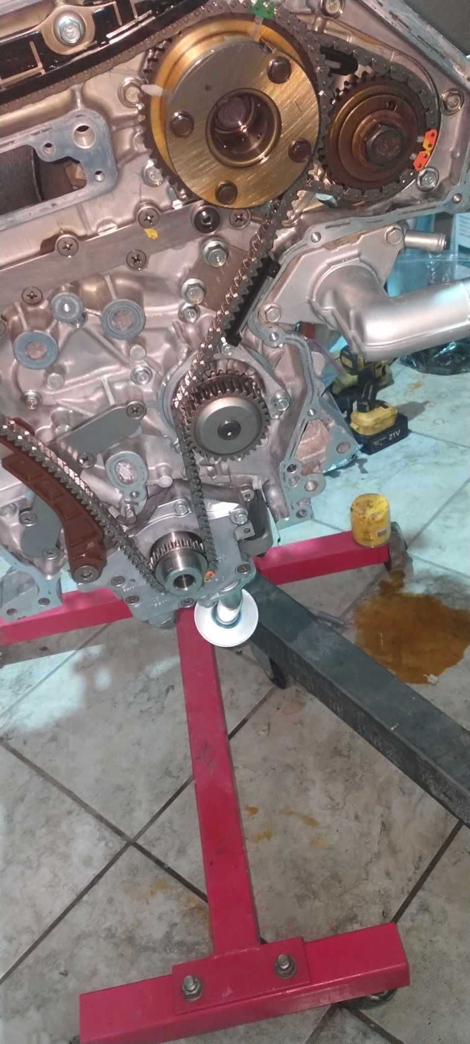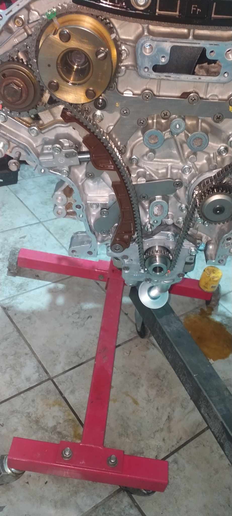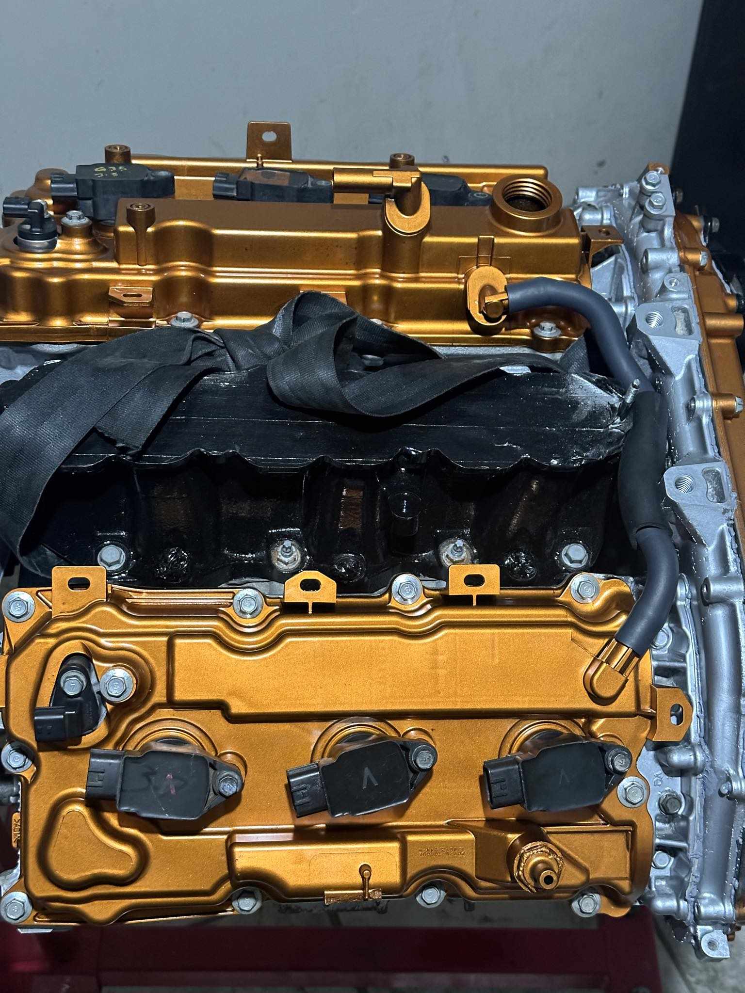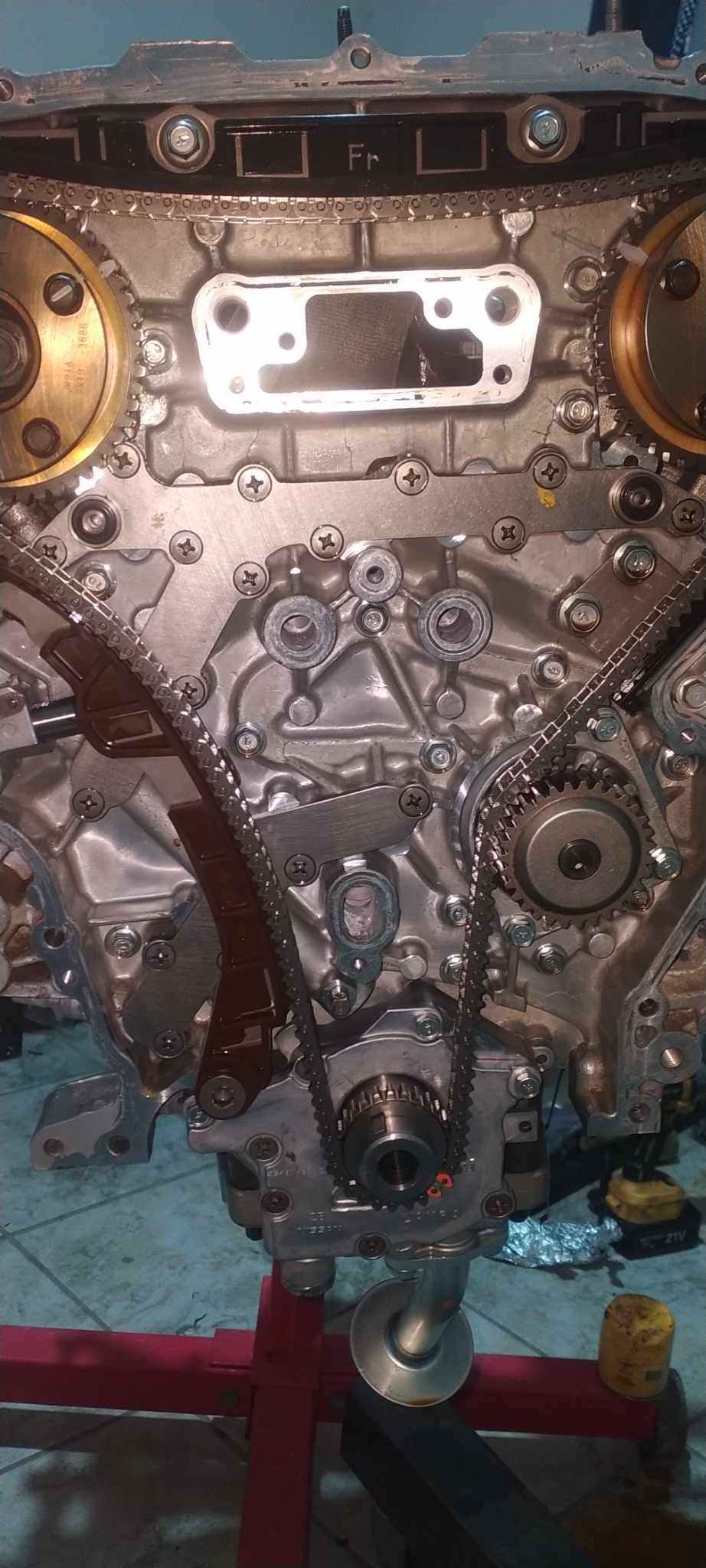 I’ve added more pictures of the timing setup. I had to use VQ30DE intake cam bolts for the third-generation exhaust cams. I also painted the timing cover and opted to use the cover from my original engine because I prefer the style of VVT covers, similar to those found on GTRs and VHRs.
