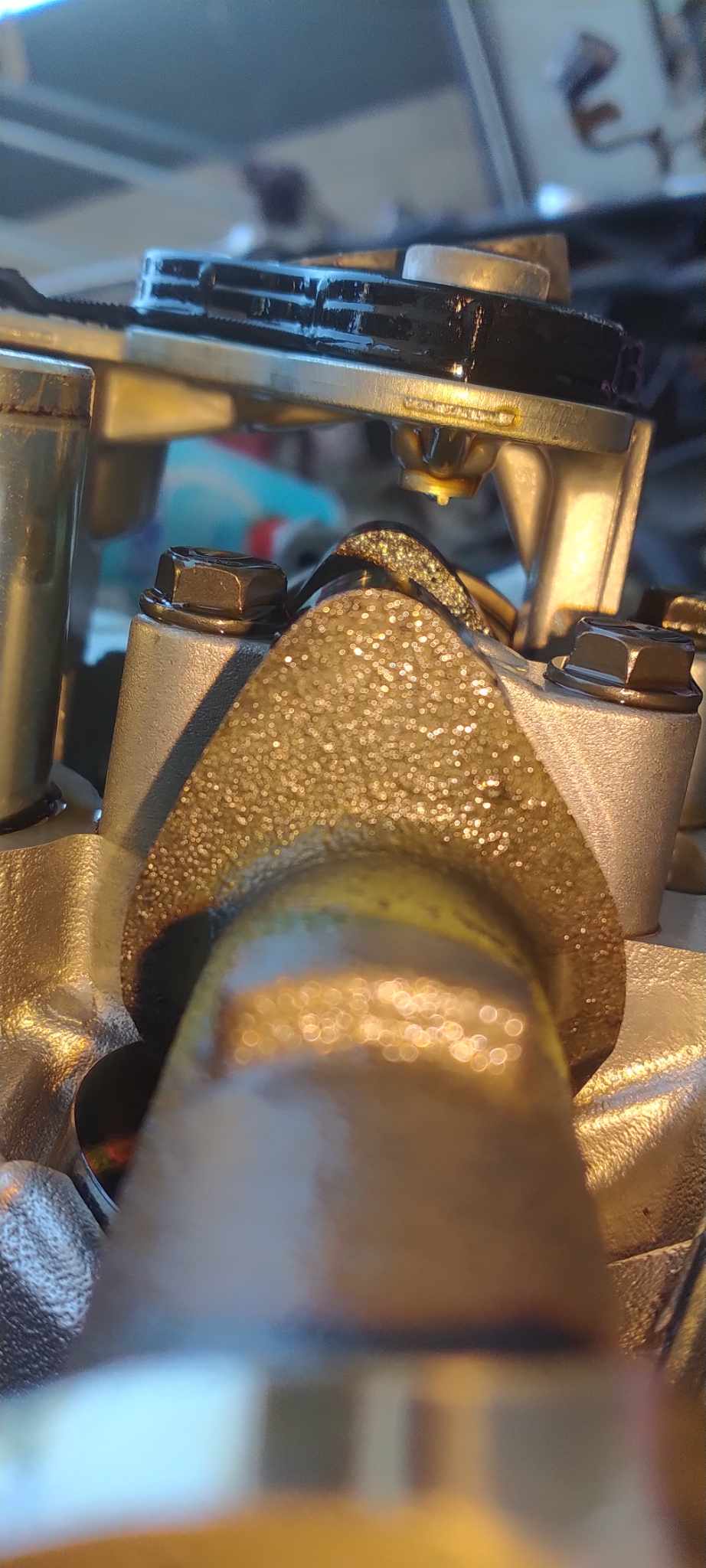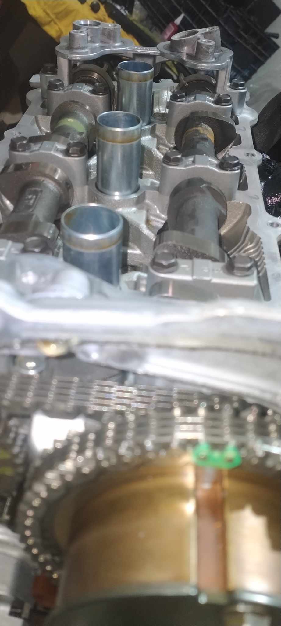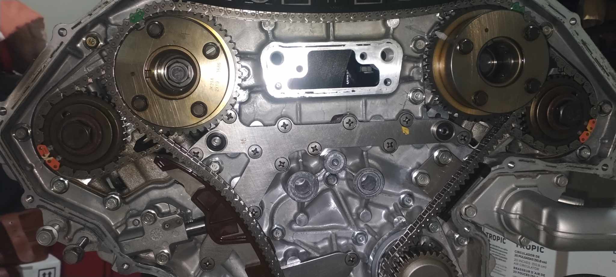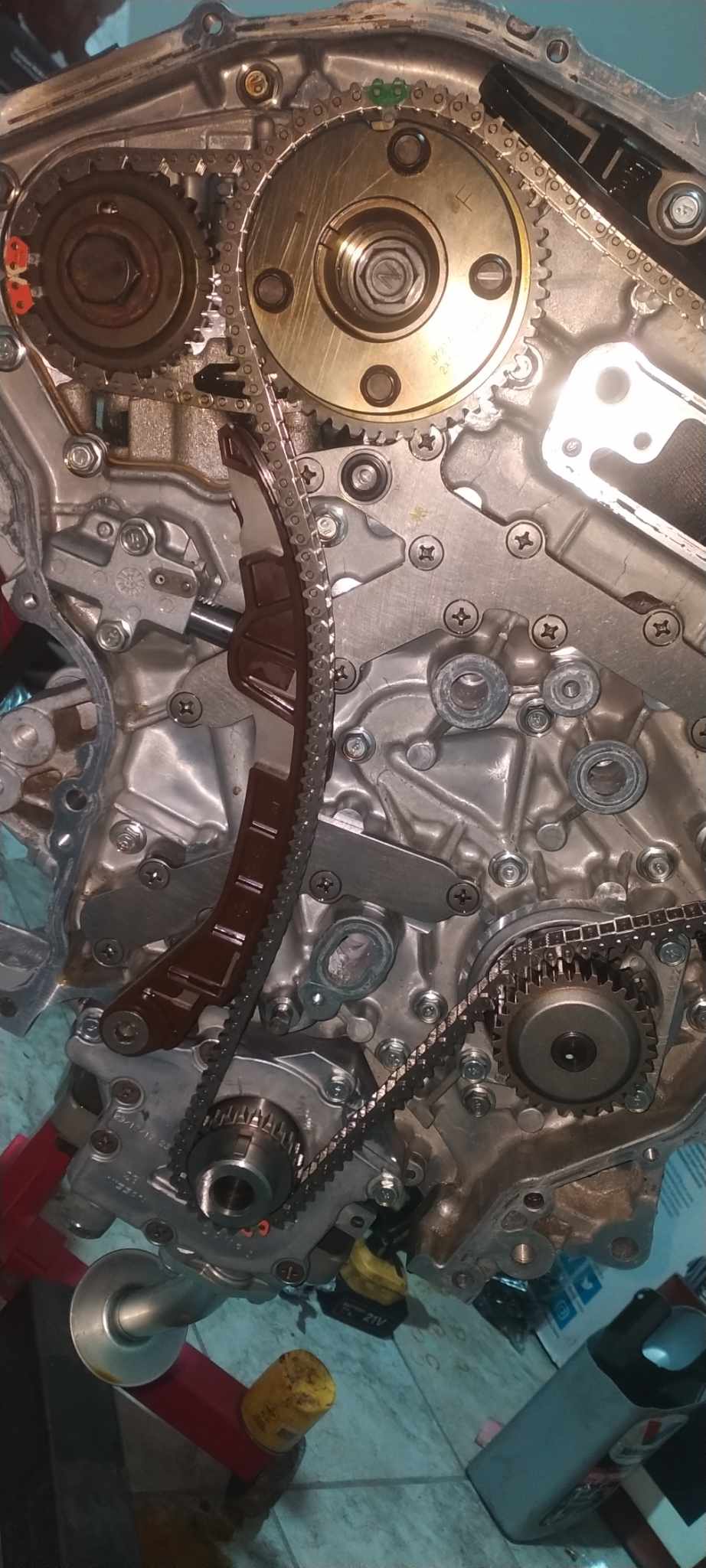 I’ve added more pictures of the timing setup. I had to use VQ30DE intake cam bolts for the third-generation exhaust cams. I also painted the timing cover and opted to use the cover from my original engine because I prefer the style of VVT covers, similar to those found on GTRs and VHRs.