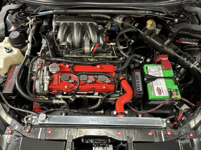 Henry also customized his timing setup, used Tomei oval wire springs, and incorporated various other parts like VQ30DE intake cam bolts, 3gen exhaust cams, and VHR components. After extensive work, he successfully started the engine, highlighting additional upgrades like a 6-speed swap, NISformance stage 2 clutch, and Borla X pipe.