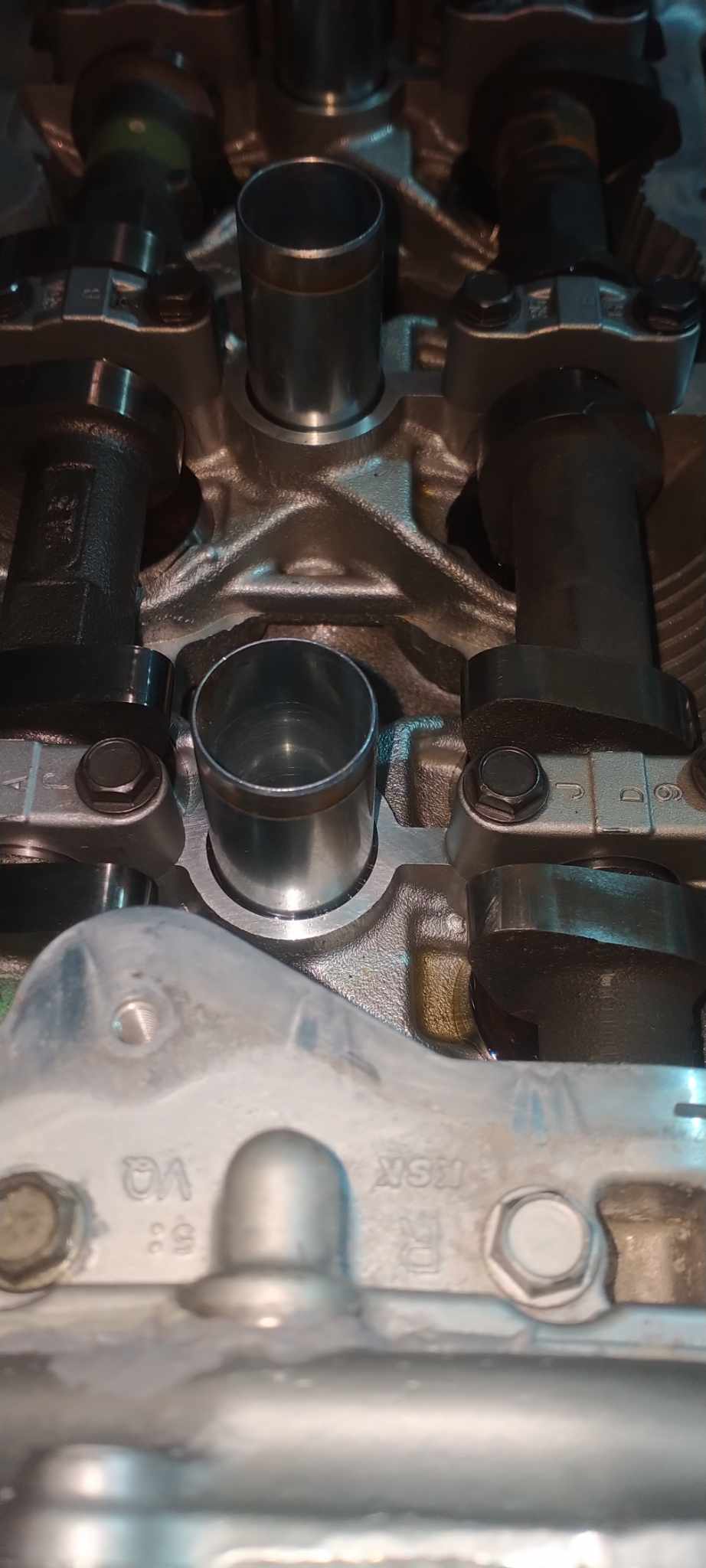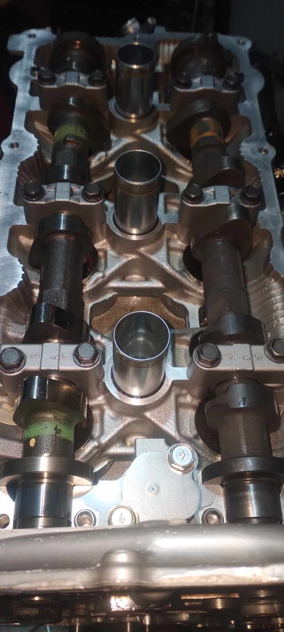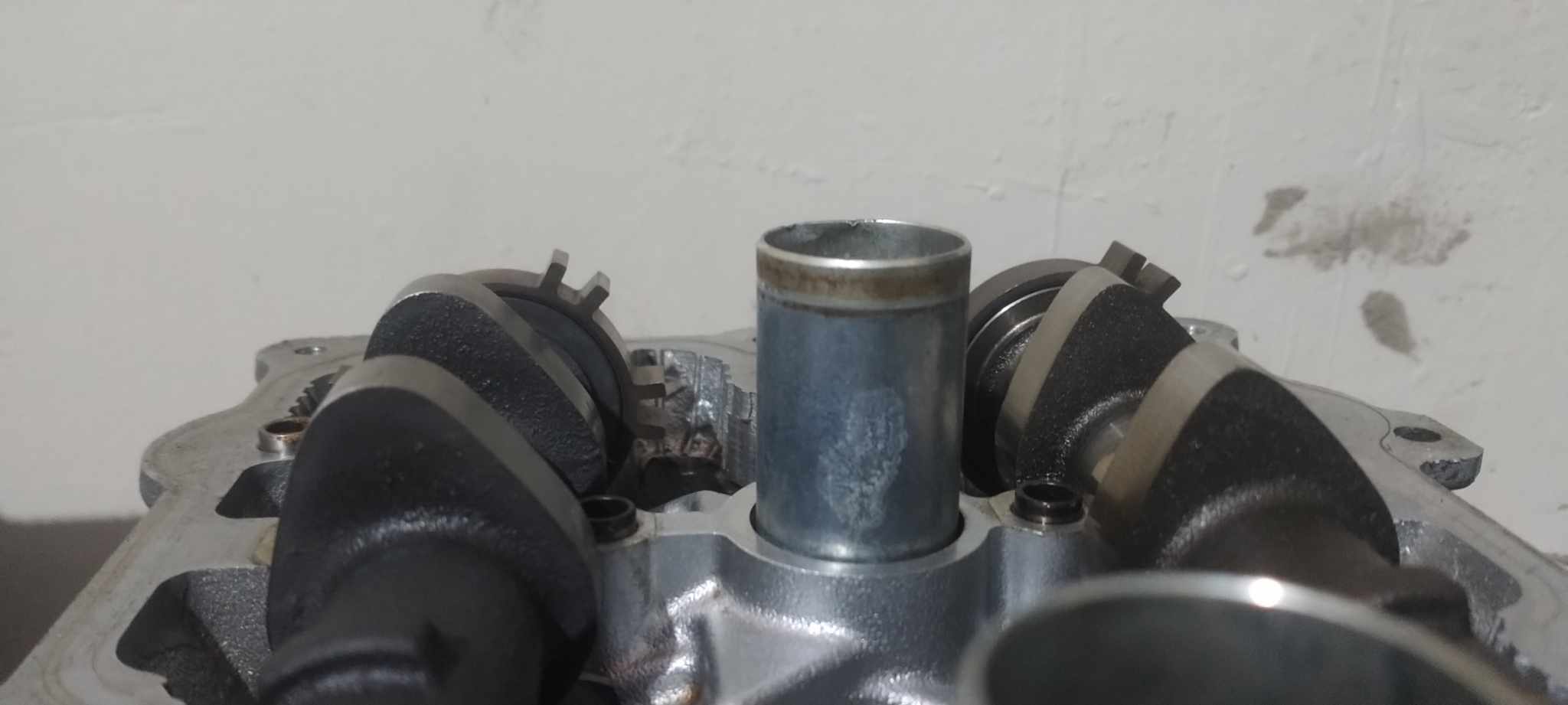 Drill the intake cams in order to reposition the dowel hole or you may purchase an spacer piece by StephenMax for $75.