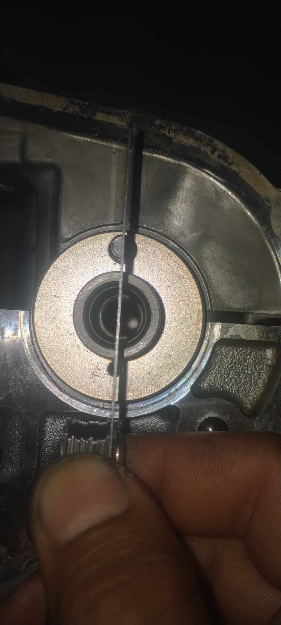To use the 3.0 ECU, you must use the 3.0 inner and outer timing cases, chain, and sprockets. You can use the 3.5 cams you will need to enlarge this hole in order to use the VQ30 timing cases. You need to enlarge the corresponding hole on the left side of the timing chain case as well.