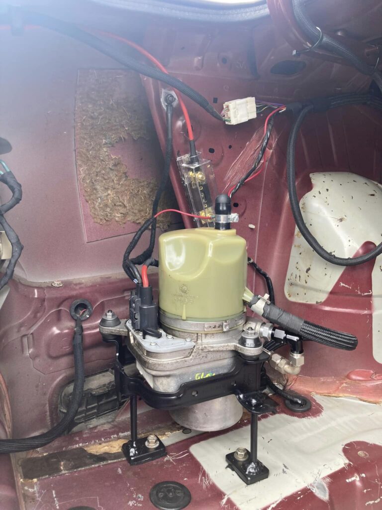 Oops, the airbags are on the same harness, so won’t work. Then oops, you’re trying to fit the 02 Altima drive-by-wire gas pedal and it wont fit, it should be on the floor right where the steering column base is. No problem, just try to shape/weld some complex bracket there so the gas pedal is where it should be.