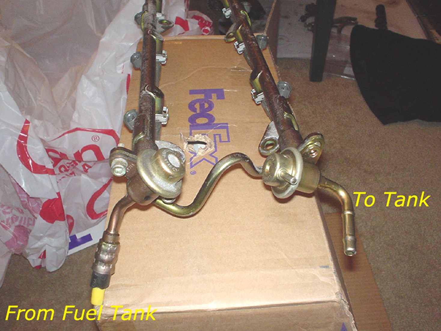 If you want to use the 3.5 injectors and fuel rail (and you should), you will need to convert your fuel system to returnless or you will need to add a FPR in place of one of the 5.5gen dampers.