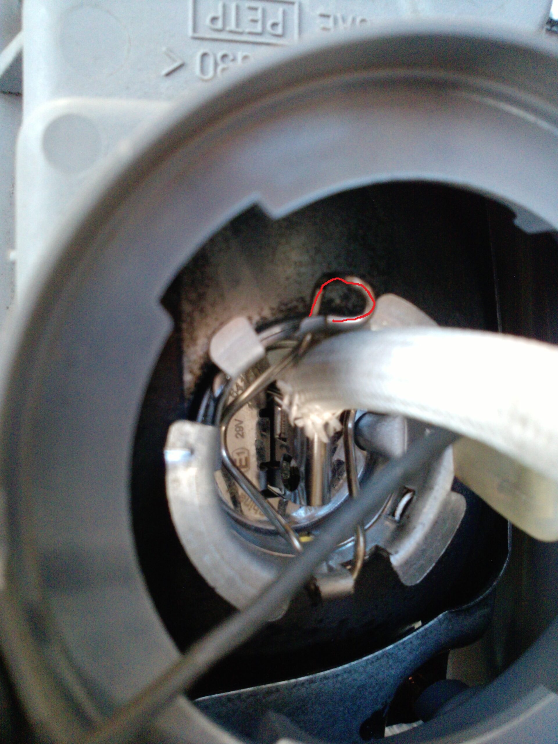 Once you take it out. Look at the body of the car where the plug was. Little further away, you will see grommet. Take the grommet out with a flat screwdriver. Don’t drop the grommet, if you, you will have to look for it somewhere close to fender, but I dropped two when I was working on it so don’t worry. It will just take a little longer to do the job if you gonna spend couple minutes getting the grommet out. Once you got the grommet, drill a hole in the middle, make sure its tight but good enough to push four wires through it.