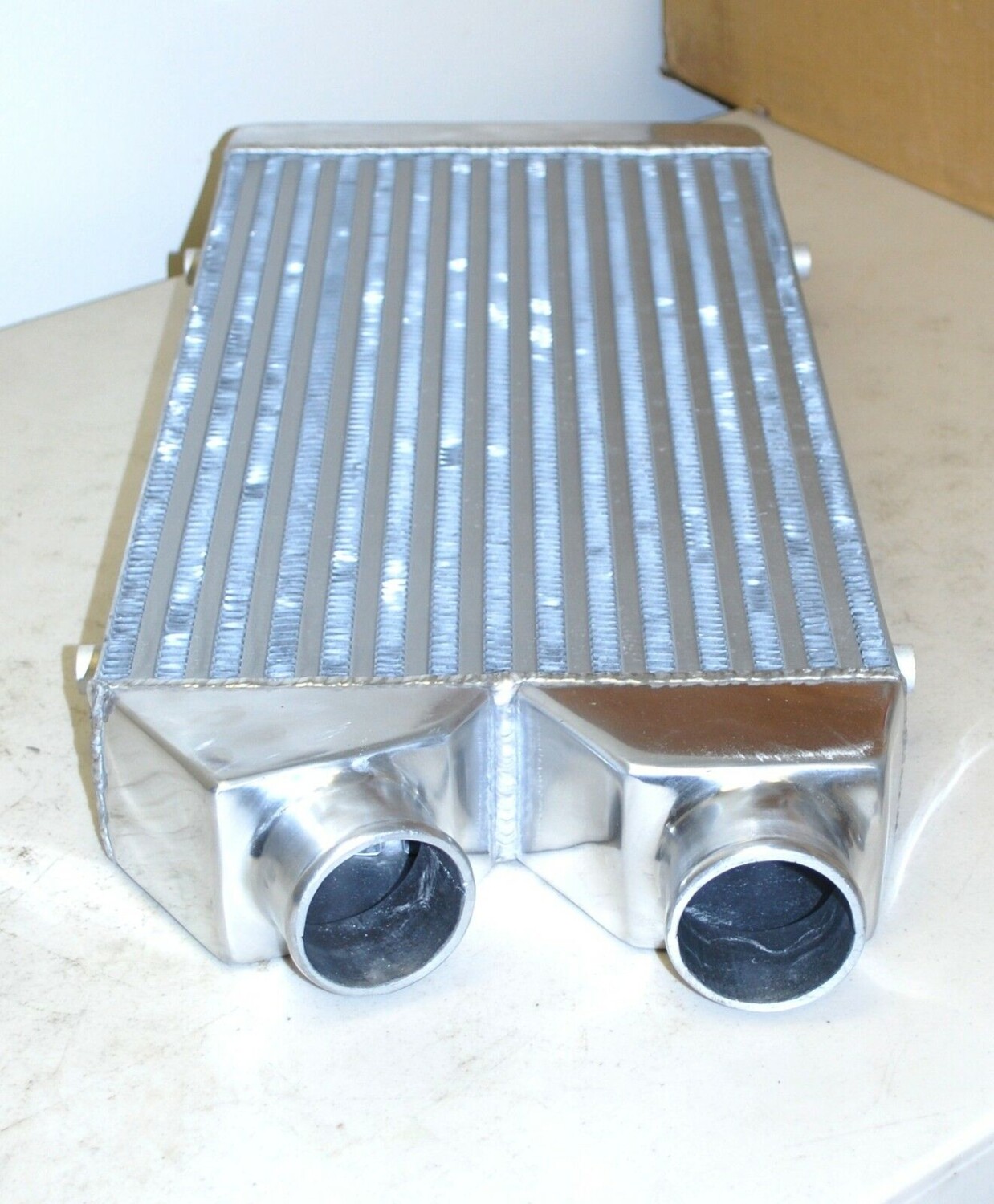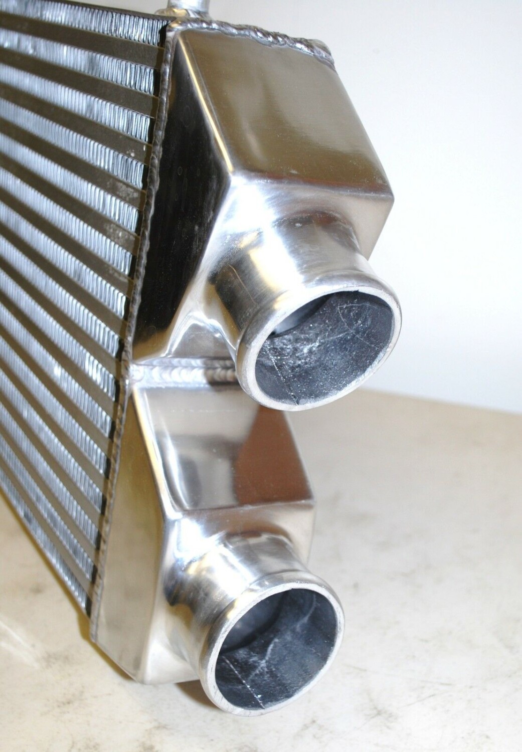 - Turbo feed pipe size has 2.25in legs coming off the headers and merging into 2.5inch up to the turbo. There is a v-band in place before the turbine to be able to swivel the turbo around.