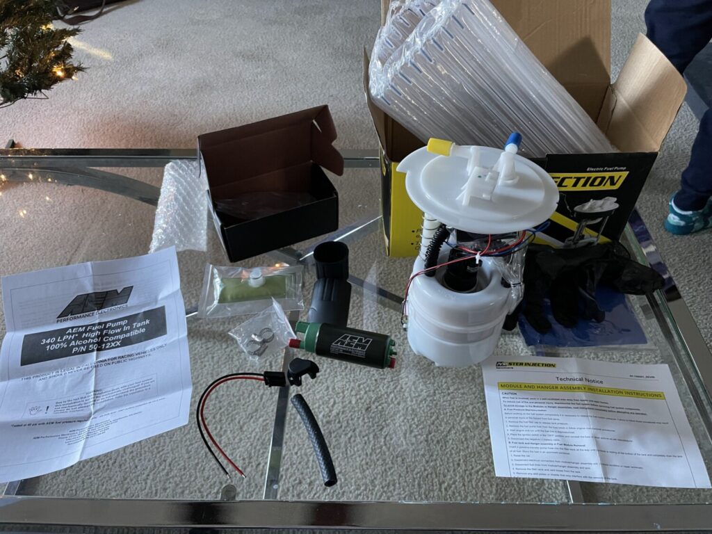 I confirmed with AEM that they changed the design of that portion of these pumps to the more common type of plug connection. The rest of the dimensions and specs remain the same. Kit still comes with the pre-filter sock, sock clip, submersible hose, two hose clamps, harness plug, lower rubber pad, some rubber isolation options, instructions, and an AEM decal. Most part distributor sites are not using updated photos. Even AEM’s own website isn’t updated to reflect those changed.