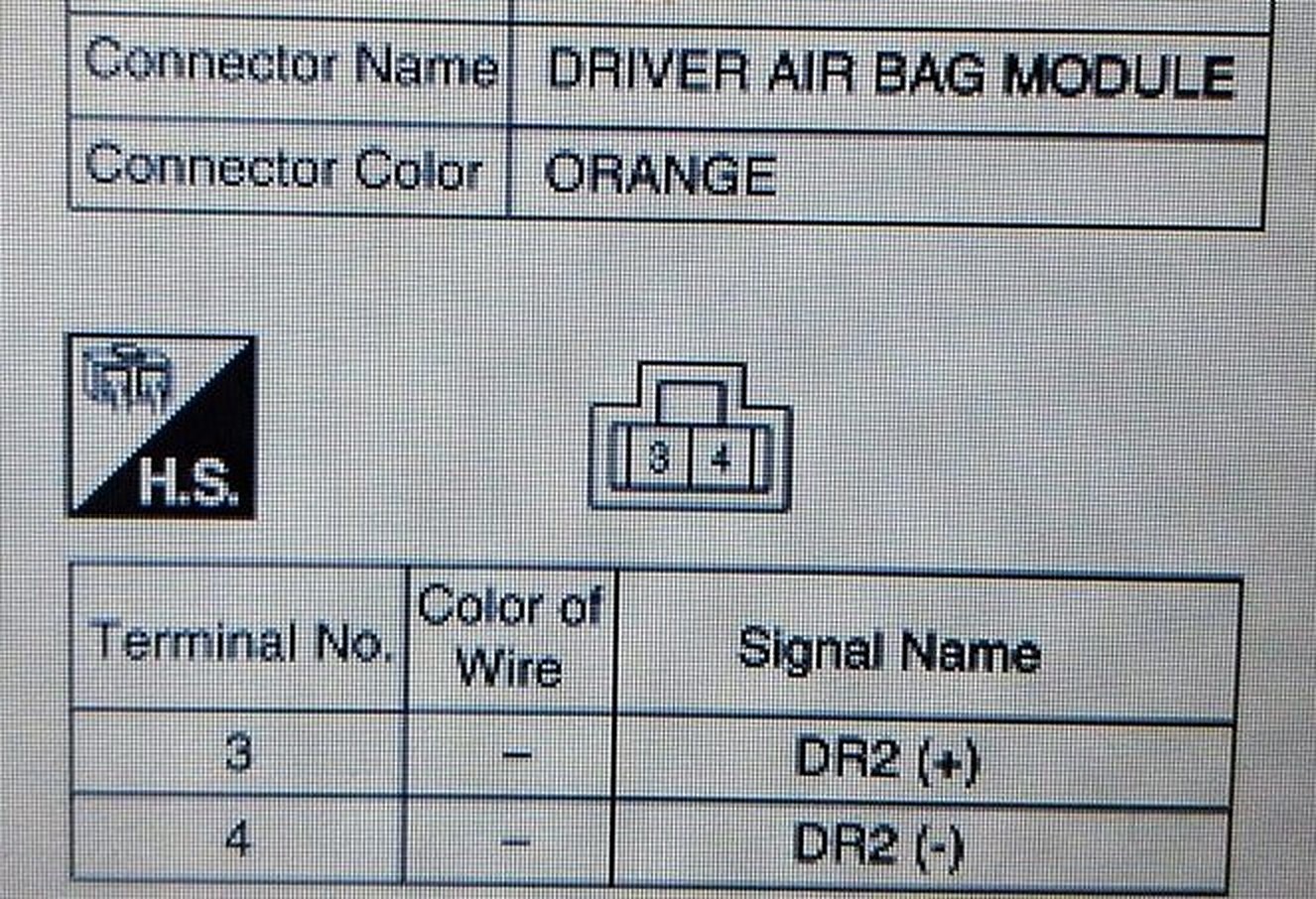 These are the pin positions inside the vehicle. Just do the same for the other vehicle, and match them to their function. As long as the clockspring connector is the same just set it up and plug it in.