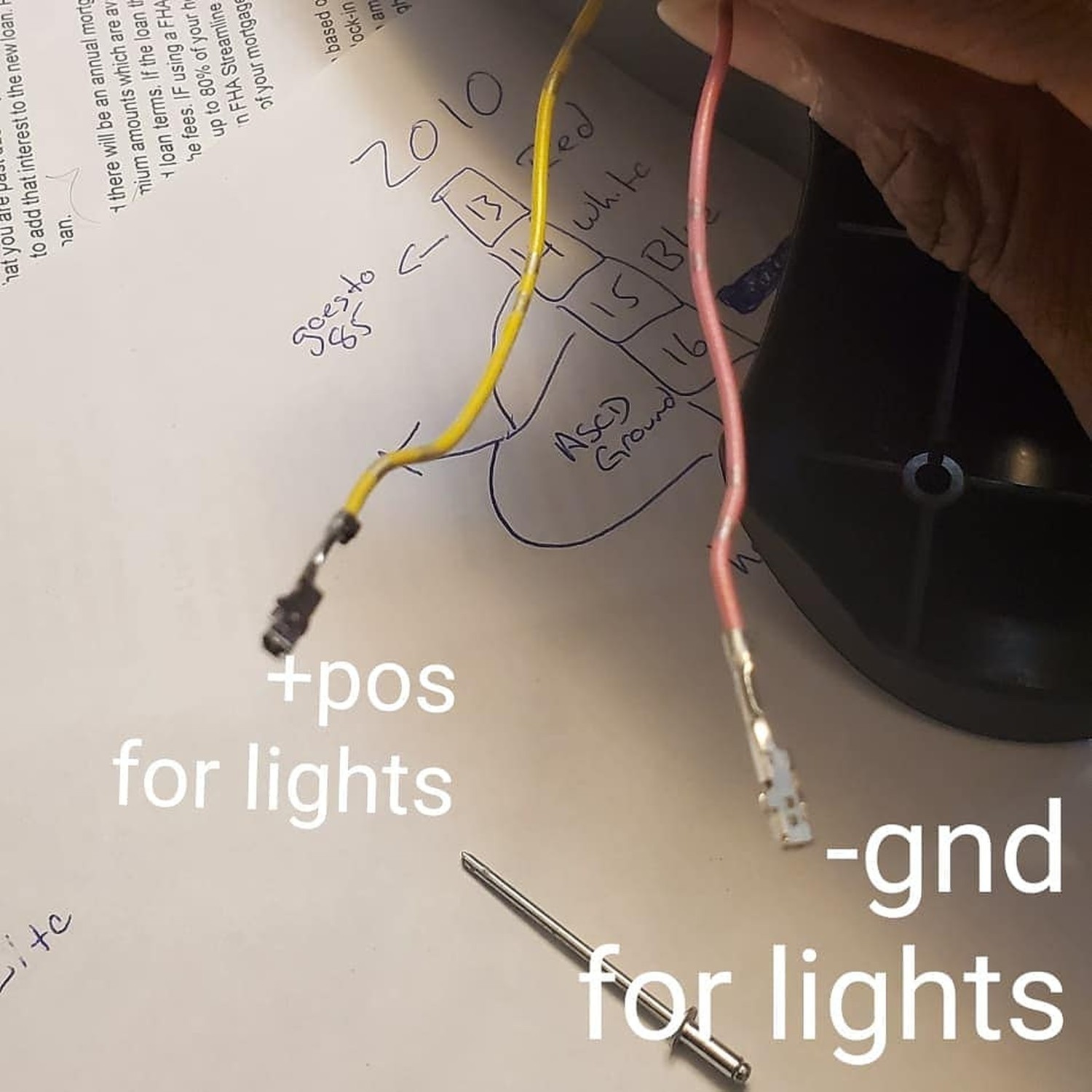 Above is everything hooked up except the Ground (terminal wire you cut). I Forgot a pic of the Crimp on the Terminal wire. You just want to join them together into a Female spade connector, you can see it pretty clearly in the pic below (red wire). Please ignore the crudity of the wiring install, it’s temporary, I’ll be installing a SPDT Relay to run my LED handle lighting, at that point I’ll be re-doing the wiring and mounting the Relay