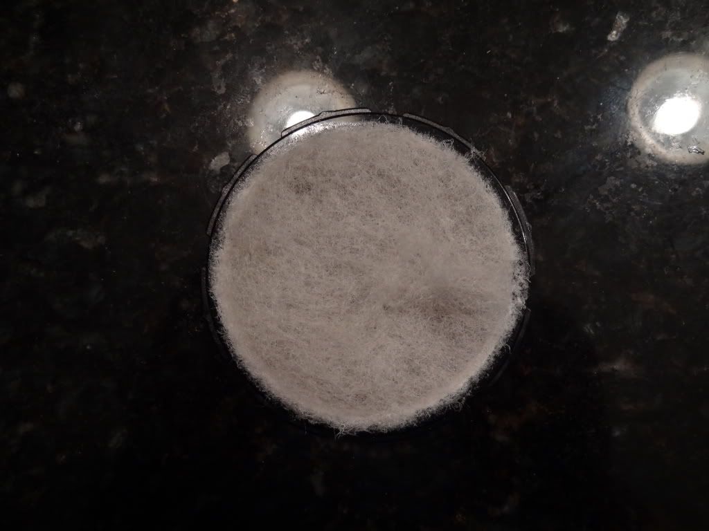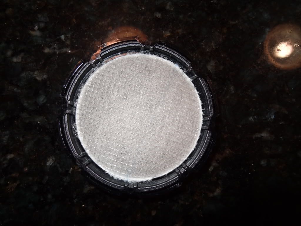 So the next thing I noticed. This is just a synthetic fiber mesh. There is no paper involved. So I just washed mine with dawn and let it air dry for a few minutes. This cleaned it 90% of the way, it was pretty gross to start with. Here is the after, sorry no before pics: