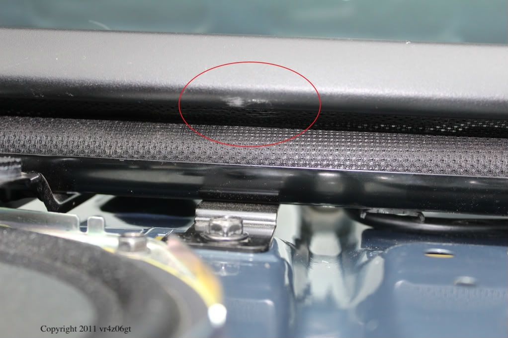 Be careful with the one on the passenger side middle as it is located just under the sunshade and the socket wrench will damage it, as I did and you can see here, if you don’t put something in between the wrench and the sunshade.