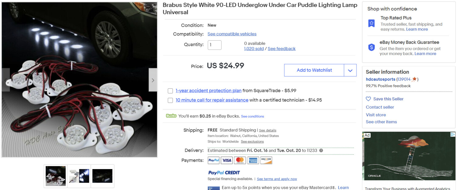 Item Description: Brabus Style White 90-LED Underglow Under Car Puddle Lighting Lamp Universal