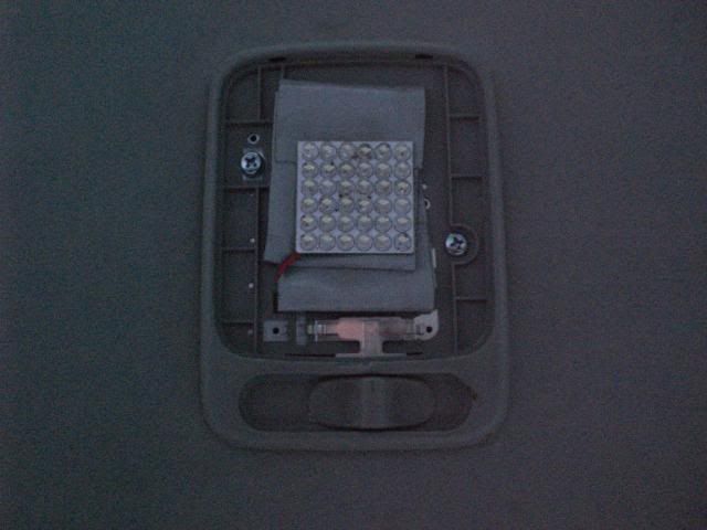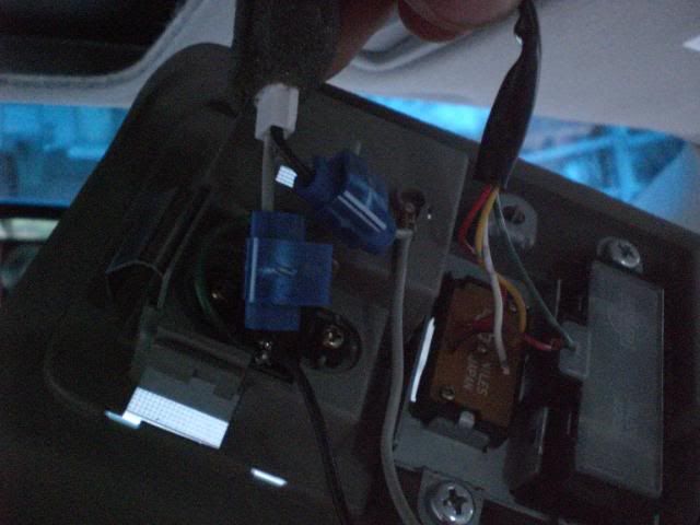to get the map lights to work you need to reverse the polarity..once you remove the map light/sunglasses holder (2 phillips scerws in sunglasses holder then it pops off) you need to switch the – and + wires.. i did this by using quick taps as can be seen in this pic…