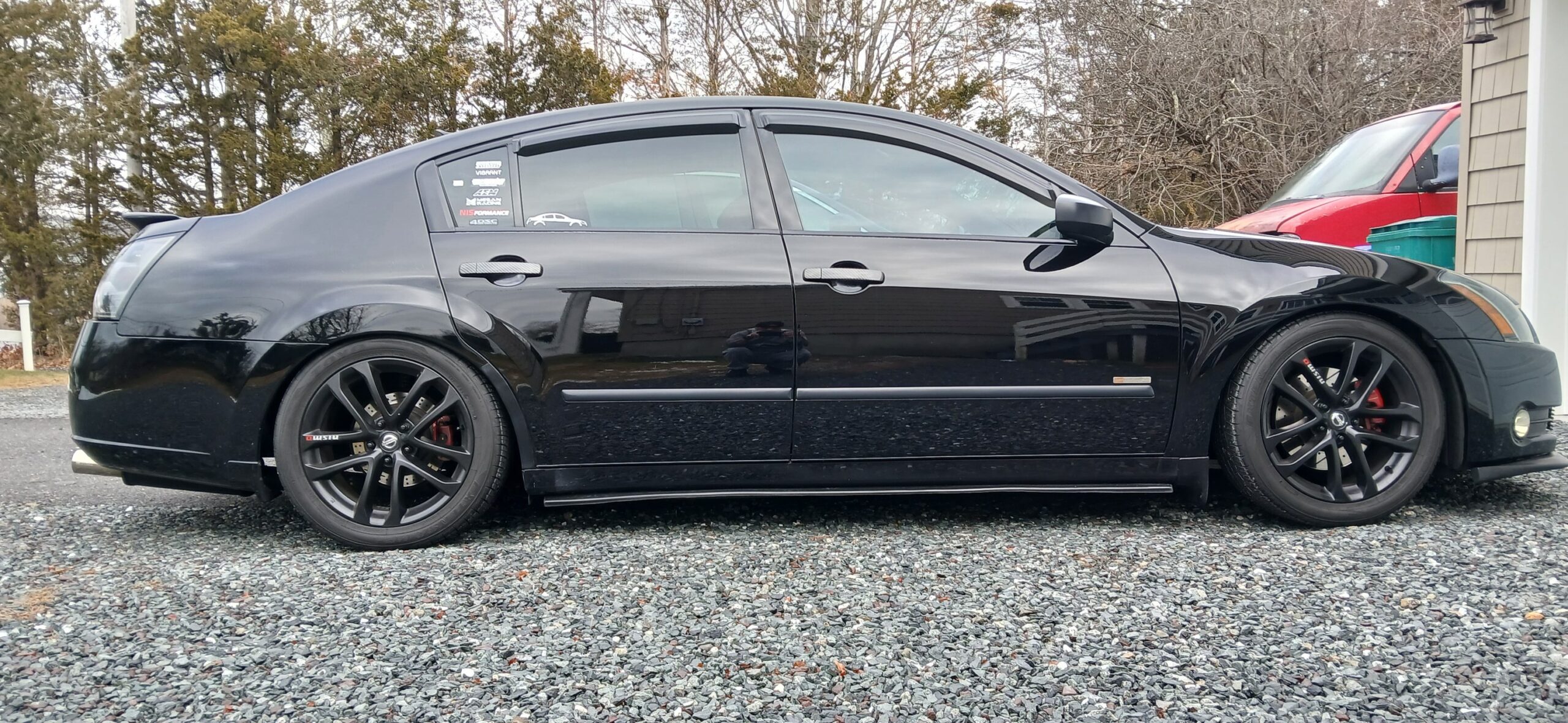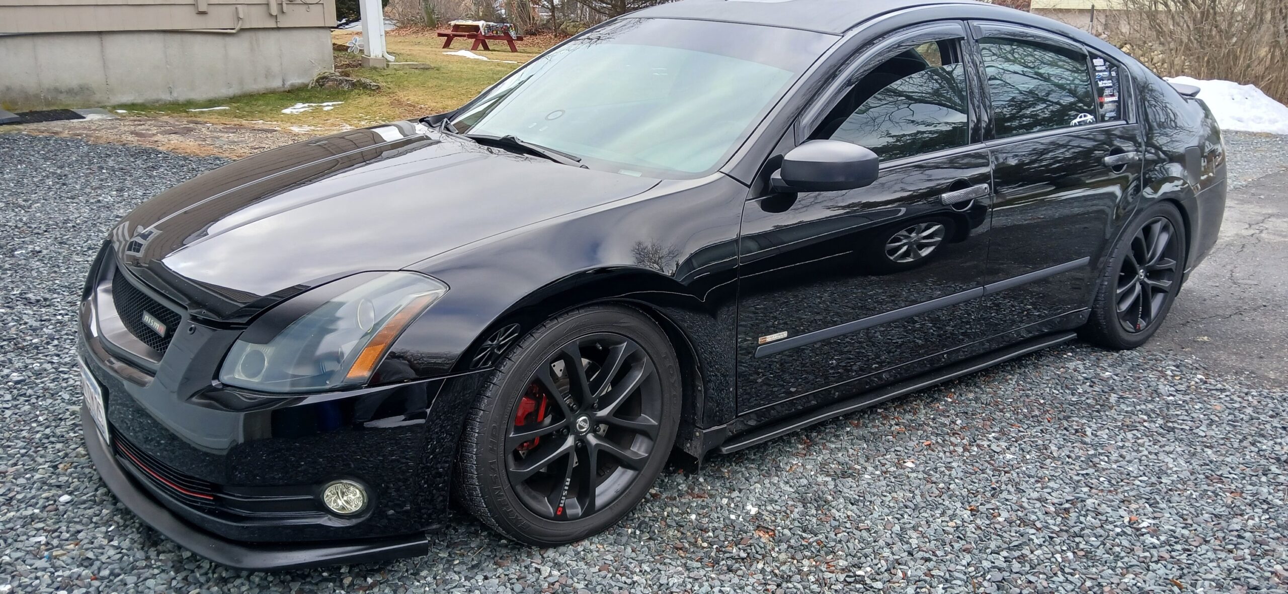 Mods: 2005 Maxima 6MT — E85 tuned, 4” intake, 600cc injectors, ~340hp, OBX headers/ypipe, full exhaust, stage 2 clutch, HR heads swap, Z1 coils, Z1 18×9.5 +5 (245/45), TrueHeart coilovers.