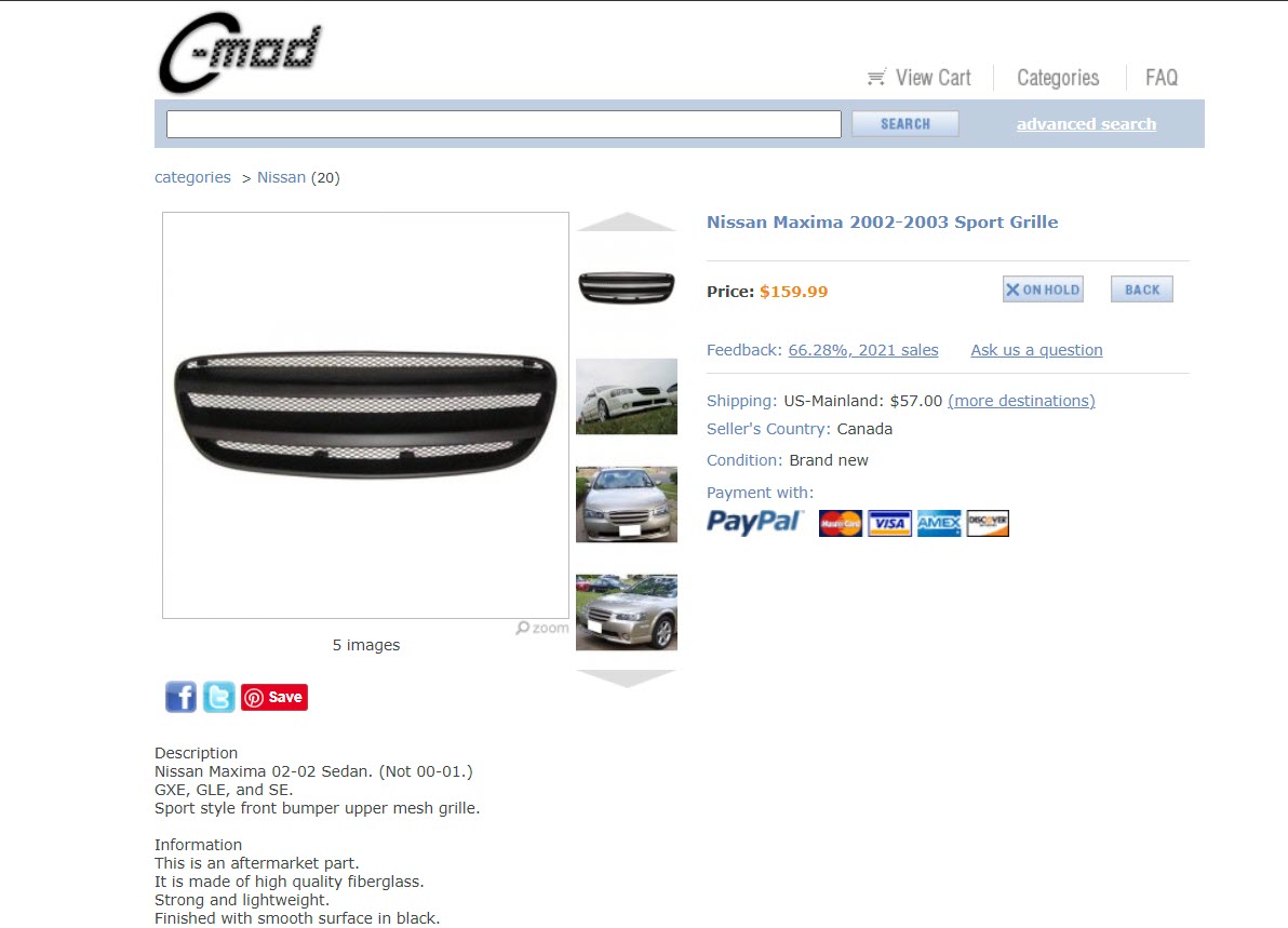 Order Link: https://c-modgrilles.ecrater.com/p/4712036/nissan-maxima-2002-2003-sport-grille