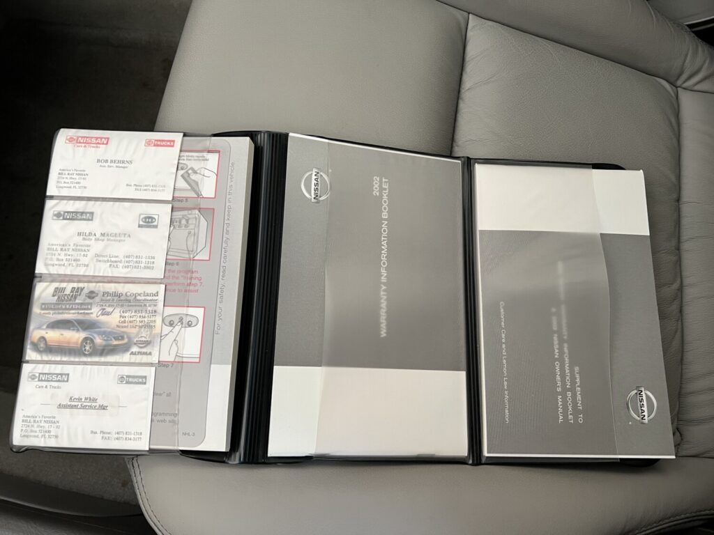 I purchased this Tungsten Blue with Tan leather 2002 Nissan Maxima SE 6MT from Billy Ray Nissan in Longwood, FL back in 2002 and have driven it gently and kept it regularly serviced ever since. Recently replaced the battery January 2021, had a major service in May 2019 (spark plugs, coolant flush, A/C recharged, etc.), front/rear struts replaced, brake pads replaced, rotors resurfaced, fluid flushed in January 2015, and regular maintenance according to either time or miles.’