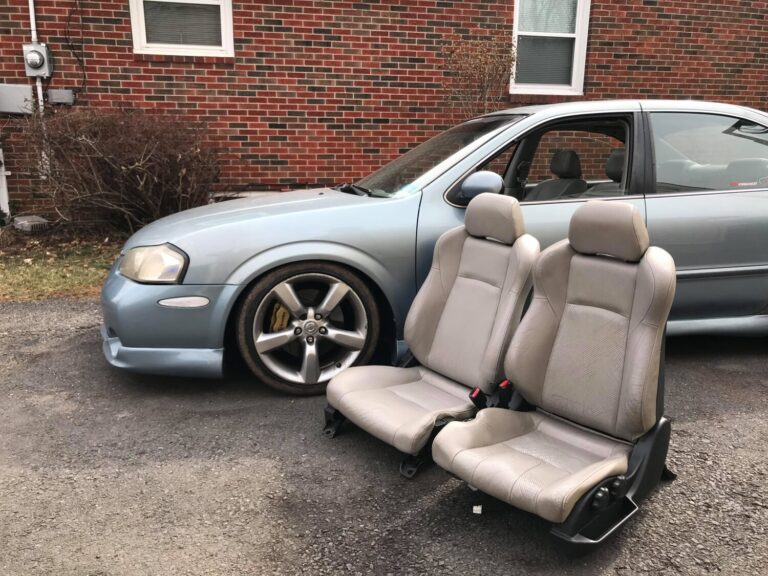 The track width between the 350z and Maxima was the exact same and was key to making this swap work. Also viable, using a seat from a B15 Sentra (00-06) – as these are a direct swap with 5/5.5 Max seats. Also, this guide is only if you have 2 manual front seat rails. All stock Maxima ’02/03 driver seats are power only but some ’00/01 Maxima driver seats are manual…I harvested a manual driver seat from a junkyard ’02 Sentra for the rail.