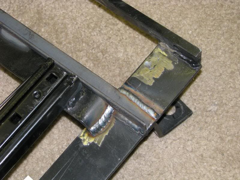After I installed the seat, and with the seat in the utmost forward position, I couldn’t push the clutch in comfortably. With the seat all the way back, it almost touched the back seats! So I took matters into my own hands, cut off the brackets, moved the bracketry up 3.25 inches, and rewelded. See pic.