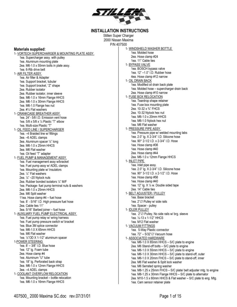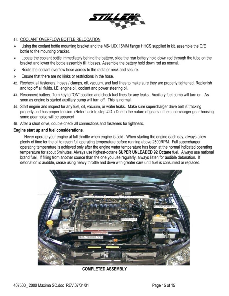 In order to supply the additional fuel, either the Vortech auxiliary inline pump should be used, or the stock in-tank pump should be replaced with the Walbro 255 LPH pump. The stock pump can not deliver enough fuel at a sufficiently high pressure to provide a rich enough AFR to prevent detonation.