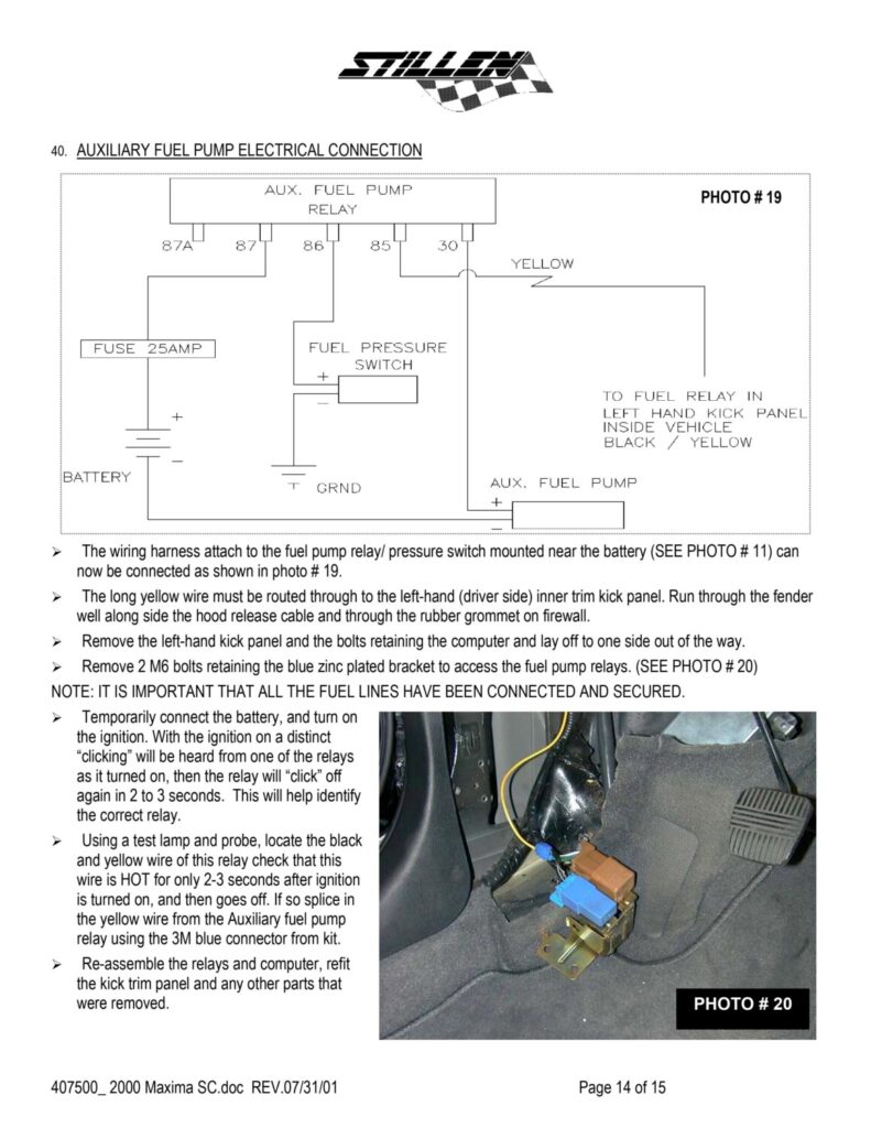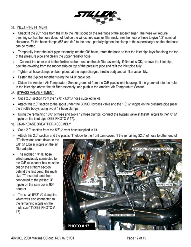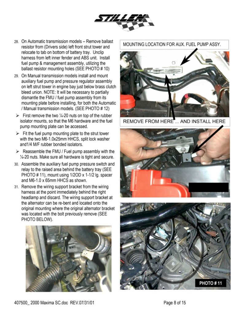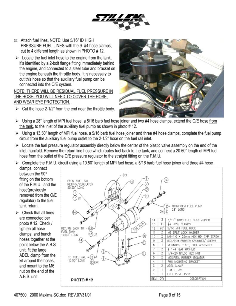 The stock fuel pump has its strainer parallel to the bottom of the gas tank and is able to suck up pretty much all the gas in the tank. The strainer that comes with the Walbro points upward at about a 30-degree angle and is not capable of sucking as much gas up (when it gets below approximately 1/8th of a tank) as the stock strainer. To fix the problem, take the stock fuel pump strainer and put it on the Walbro fuel pump. This has been tested and proven to work during the course of installing Mike’s (VIP Maxima) supercharger. With this mod, you can now drive your car like normal and not worry about running out of gas/poor performance at 1/8th of a tank.