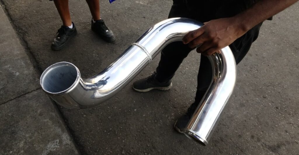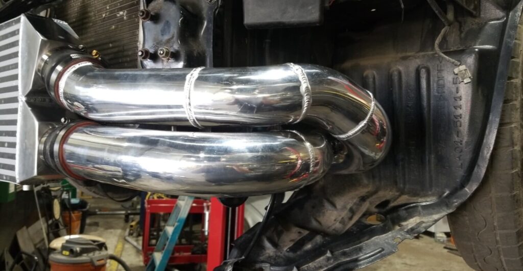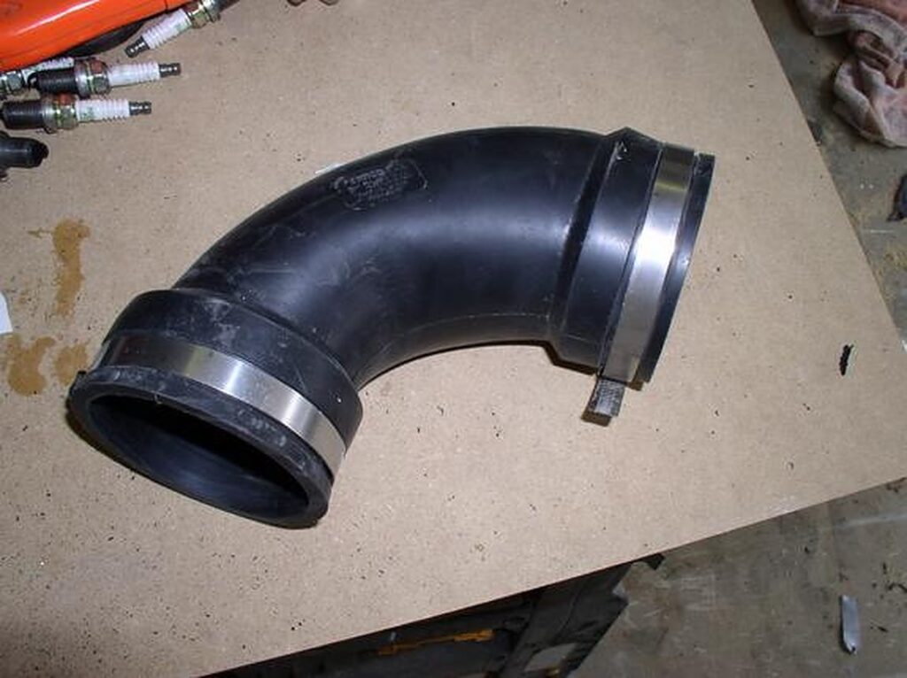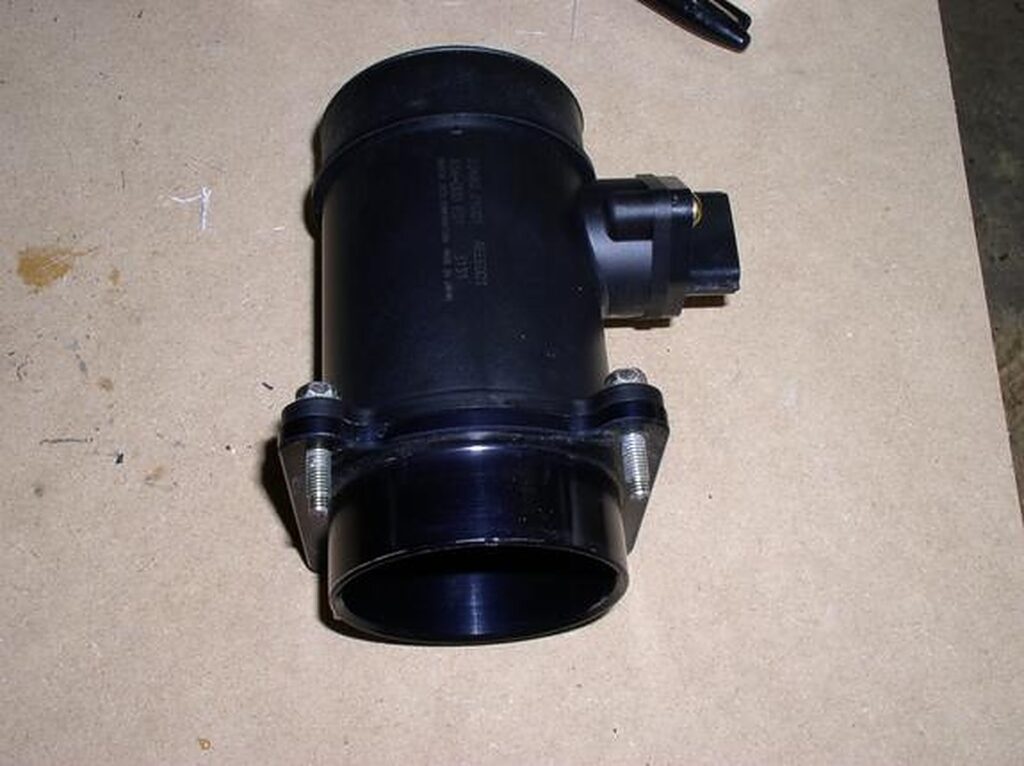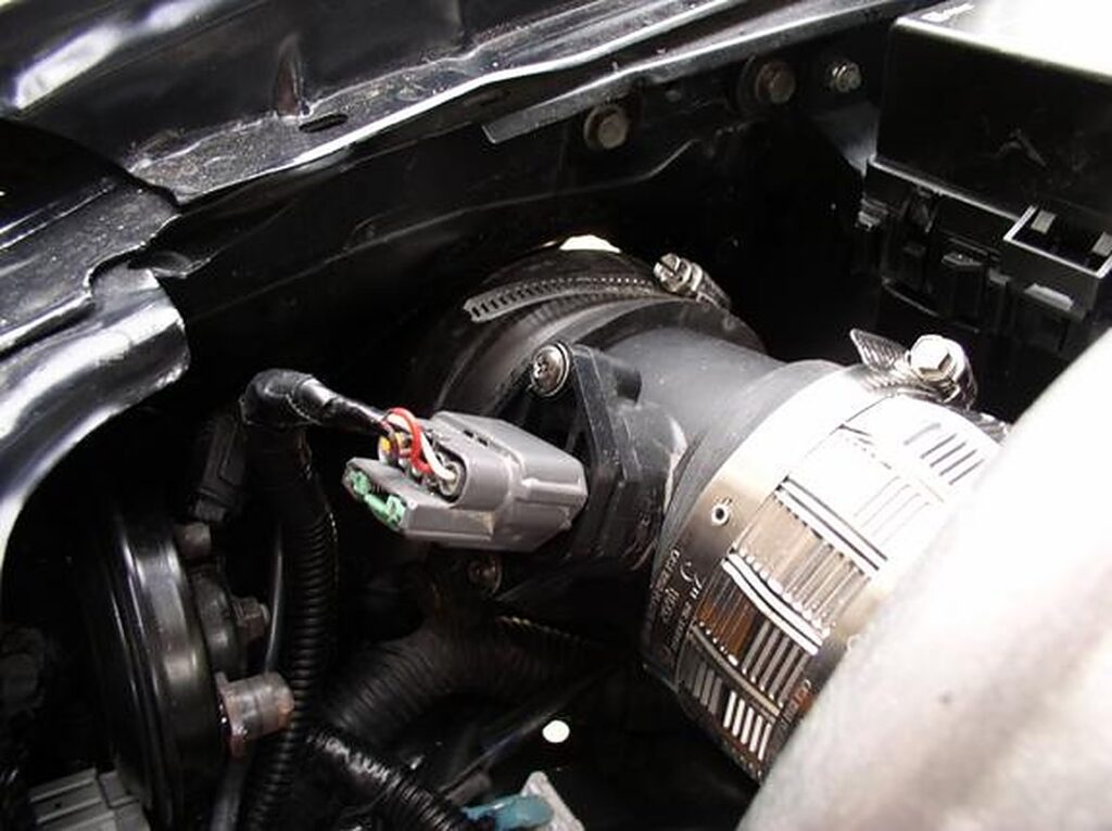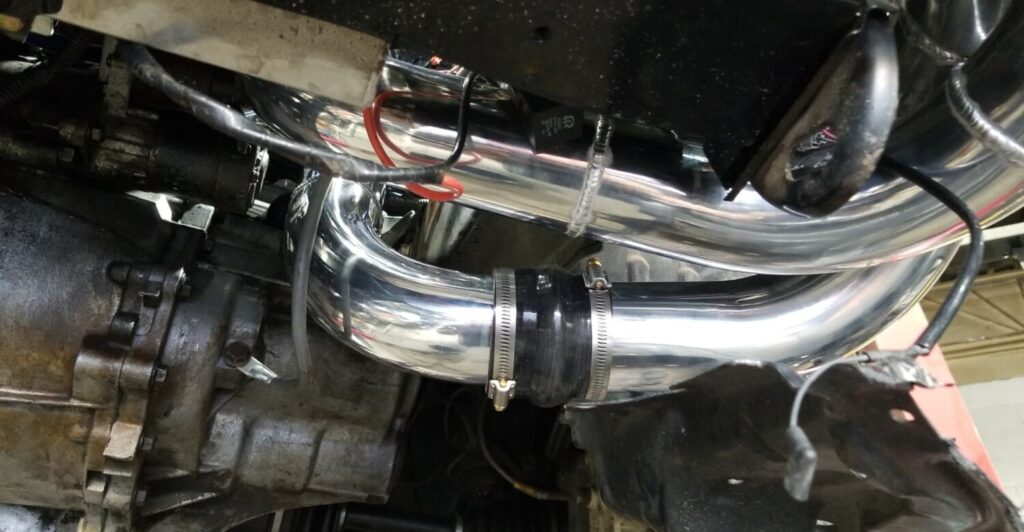 You will have to modify your MAF some. Remove the 4 bolt (10mm wrench) and then you will need to grind the flange off. Make sure that you don’t grind out the screen. Cut the 3″ silicone hoses to fit over both ends of the MAF.