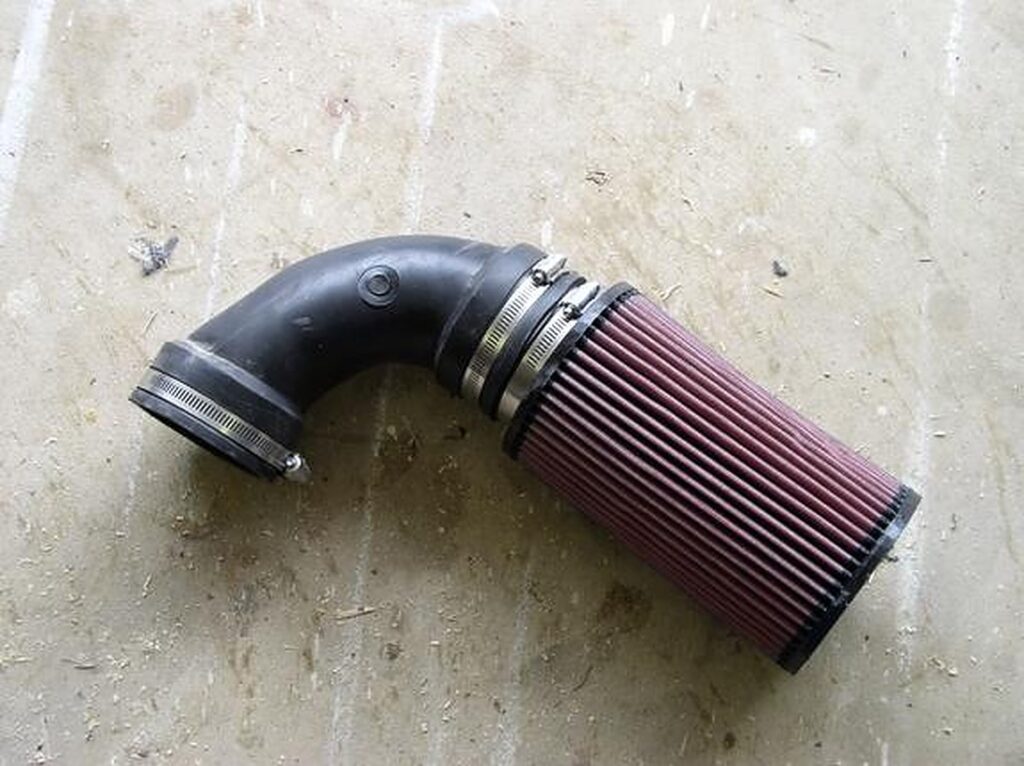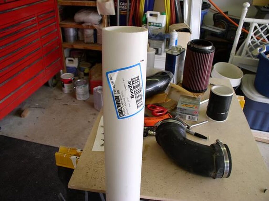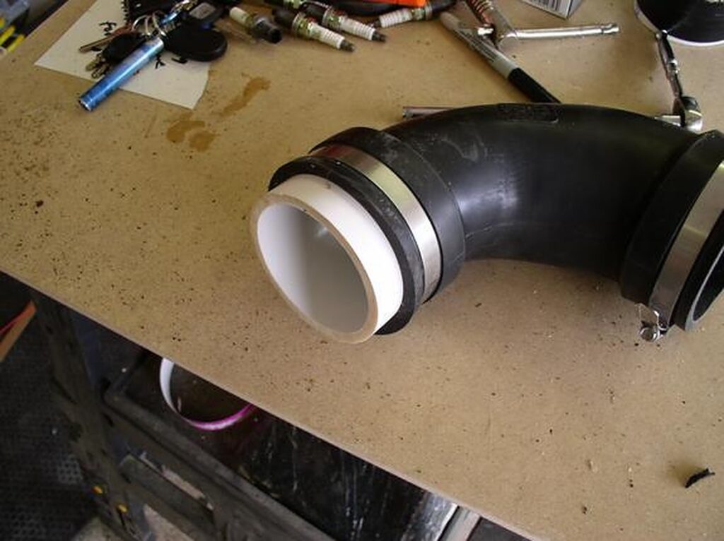 Assemble the PVC to the rubber elbow and then to the K&N filter (this way you can slide the PVC pipe up and down inside the filter to get it just right) (If you go too far into the filter take it out and cut again)