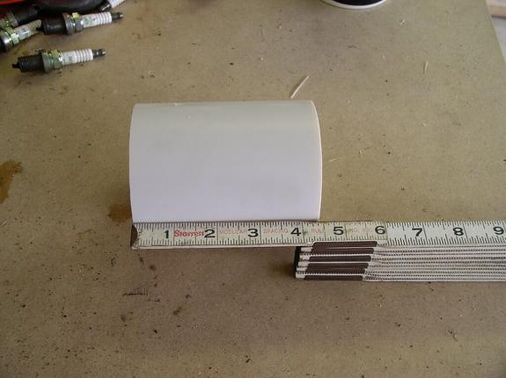 Cut the PVC pipe to about 5 1/2″ (you may want to measure for your own fit. I had a custom front bumper that is deeper. So my PVC was closer to 9″) (a miter saw works well to cut PVC).