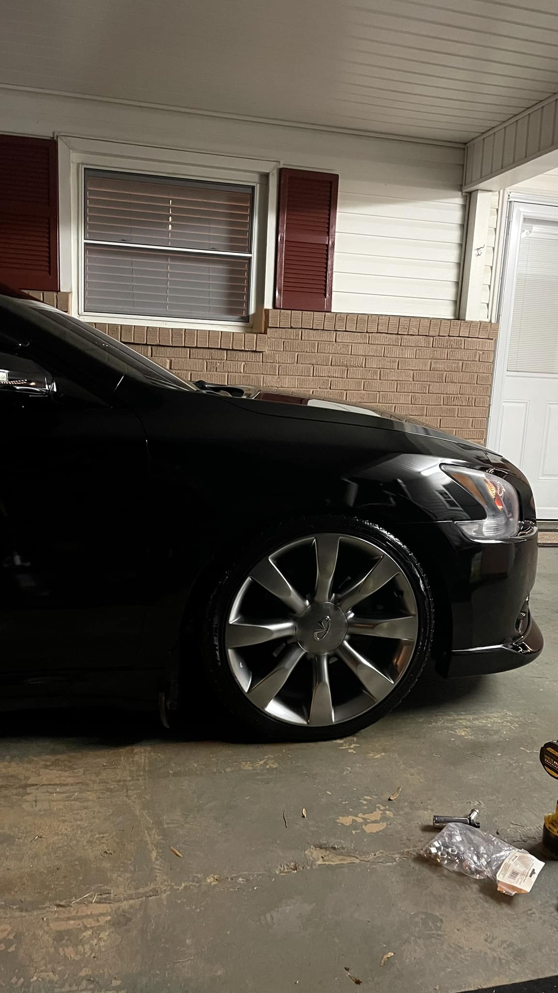 Swapped out the Motegi Traklites for my dream wheels. They are Rays Gram Lights 57CR Gun Blue II. The spec of them are 18×9.5 +22 wrapped in some 245/40/18. Went ahead and got the rear 350z brembos done too with new hardware.
